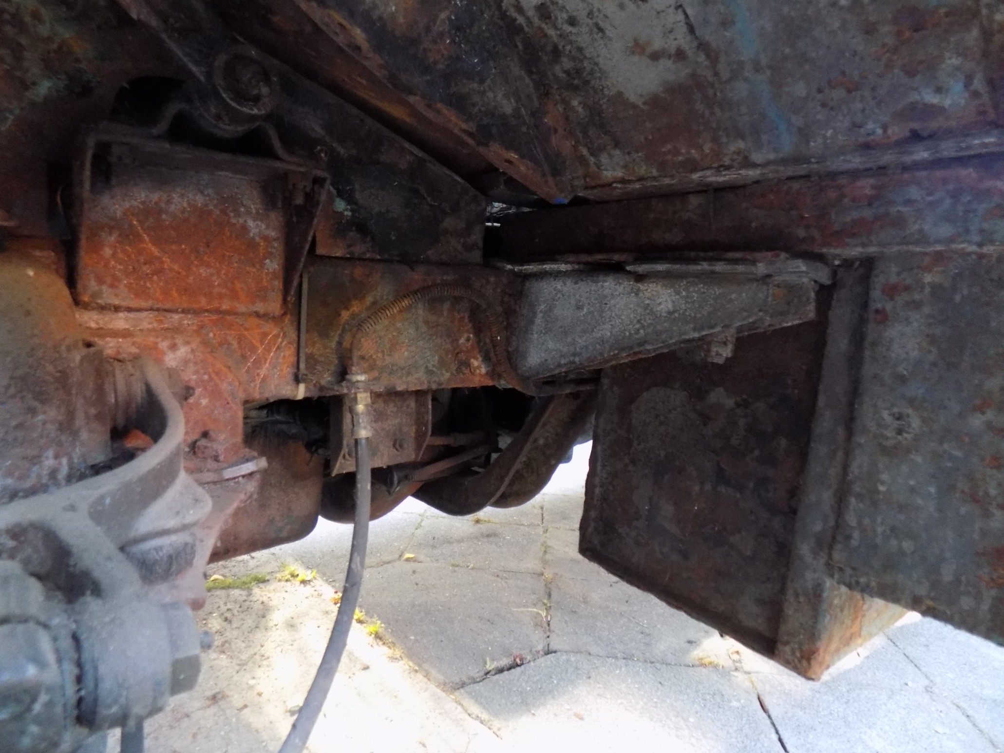 Kolejny wredny element tego nadwozia - dziura w poszyciu i próchno zamiast kątownika dolnej krawędzi nadwozia...