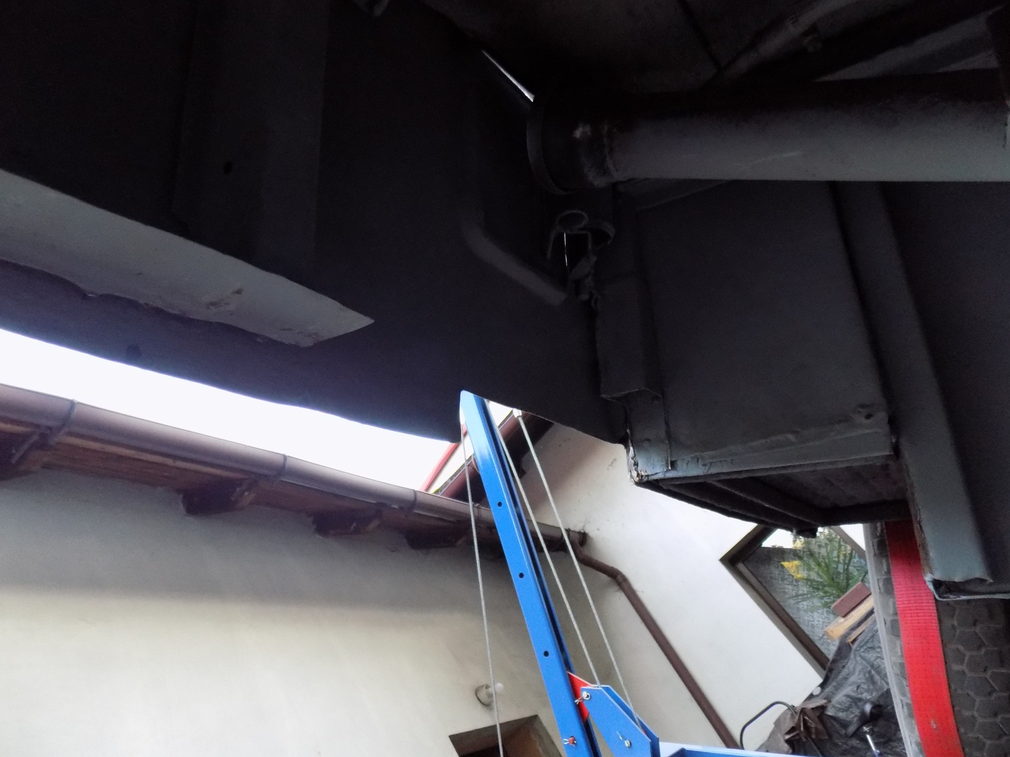 Wyciąłem pognite powierzchnie blach, resztę potraktowałem cortaninem, przeszlifowałem do gołej blachy, pomalowałem podkładem epoksydowym...