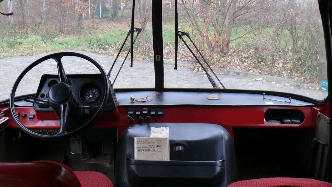 Od razu odpieram zarzut wątpliwej resortowości siłowej. Tak, wiem, nie ma drugiego baku. Ma również wyraźne ślady remontu obu boków. Zakładam, że w dobie dobrobytu stacji paliwowych strażacy albo nawet wcześniej policja wymontowali drugi bak... Przełącznik w szoferce jest. Do czego służył uchwyt na desce mogę się tylko domyślać ale zakładam, że to głośnik radiostacji właśnie. Gdzie była zamontowana to pojęcia nie mam. Tak samo jak nie ma pasów i kolejny przegląd przyprawia mnie o dreszcze ponieważ jestem pierwszym właścicielem po straży, który jest cywilem.