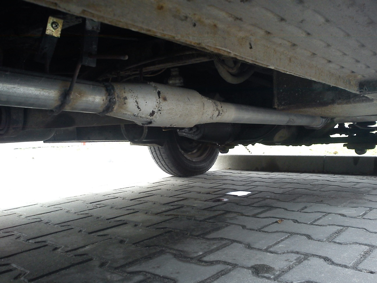 Komentarz: widok wysokosci zawiasu przód i tył, niskie opony 175/75R16C, spręzyny skrócone o 1 zwój, resory plastikowe Traffic 2.5D '95r