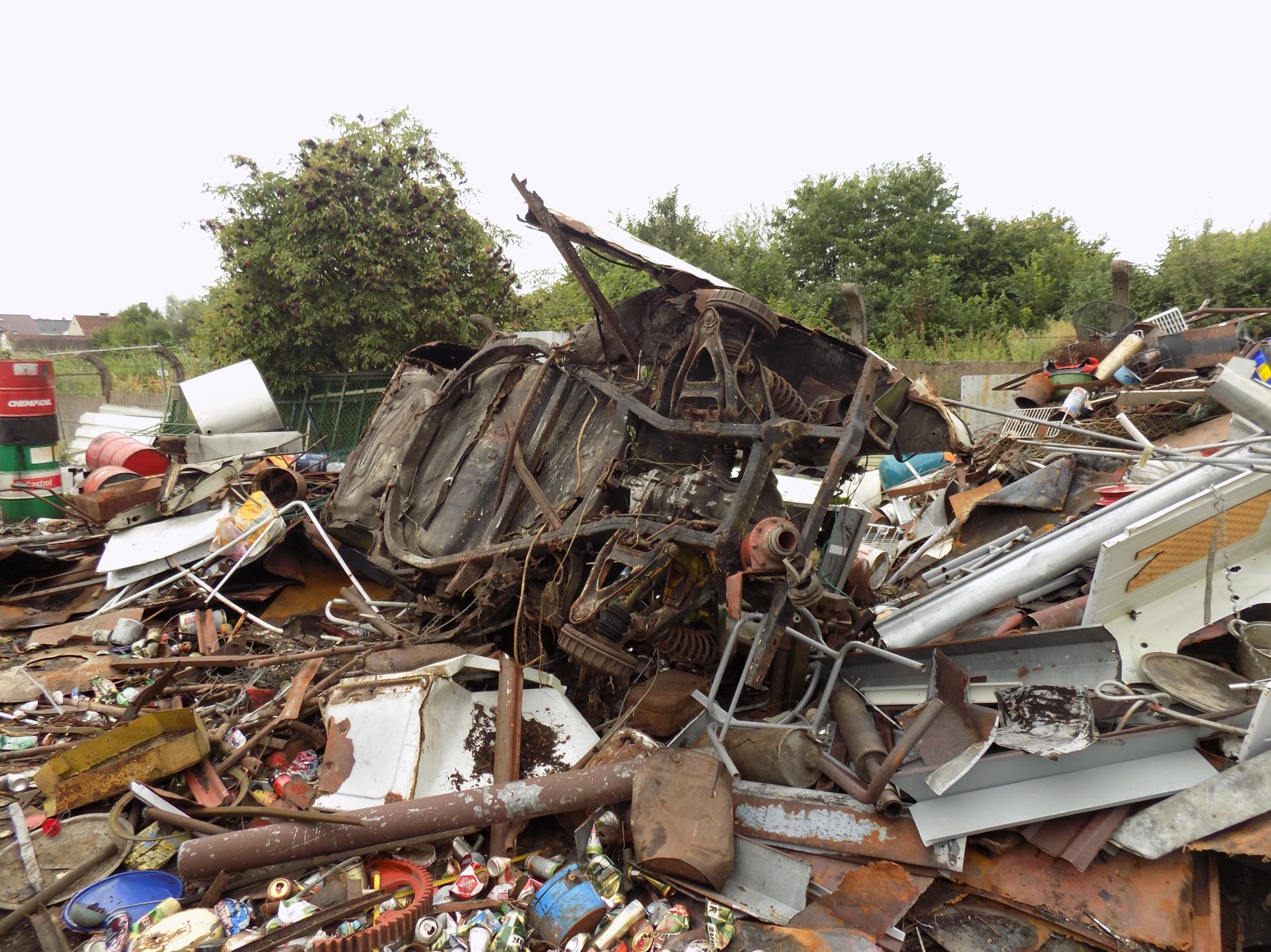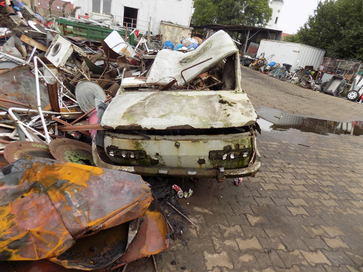 Wartbi 353 na chwilę przed zasypaniem stertą złomu z przyczepy z kiperem.