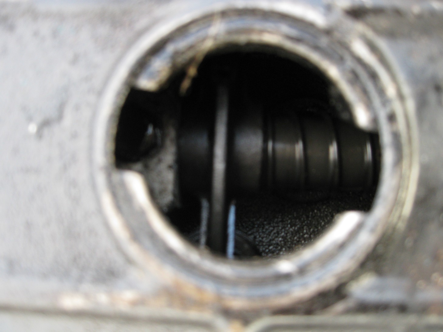 Jak widać brakuje tam korka u góry w otworze gdzie się wlewa olej. Korki takowe mam - to nie problem dla mnie. Problem jednak w tym, czy się tam już woda nie wlała.