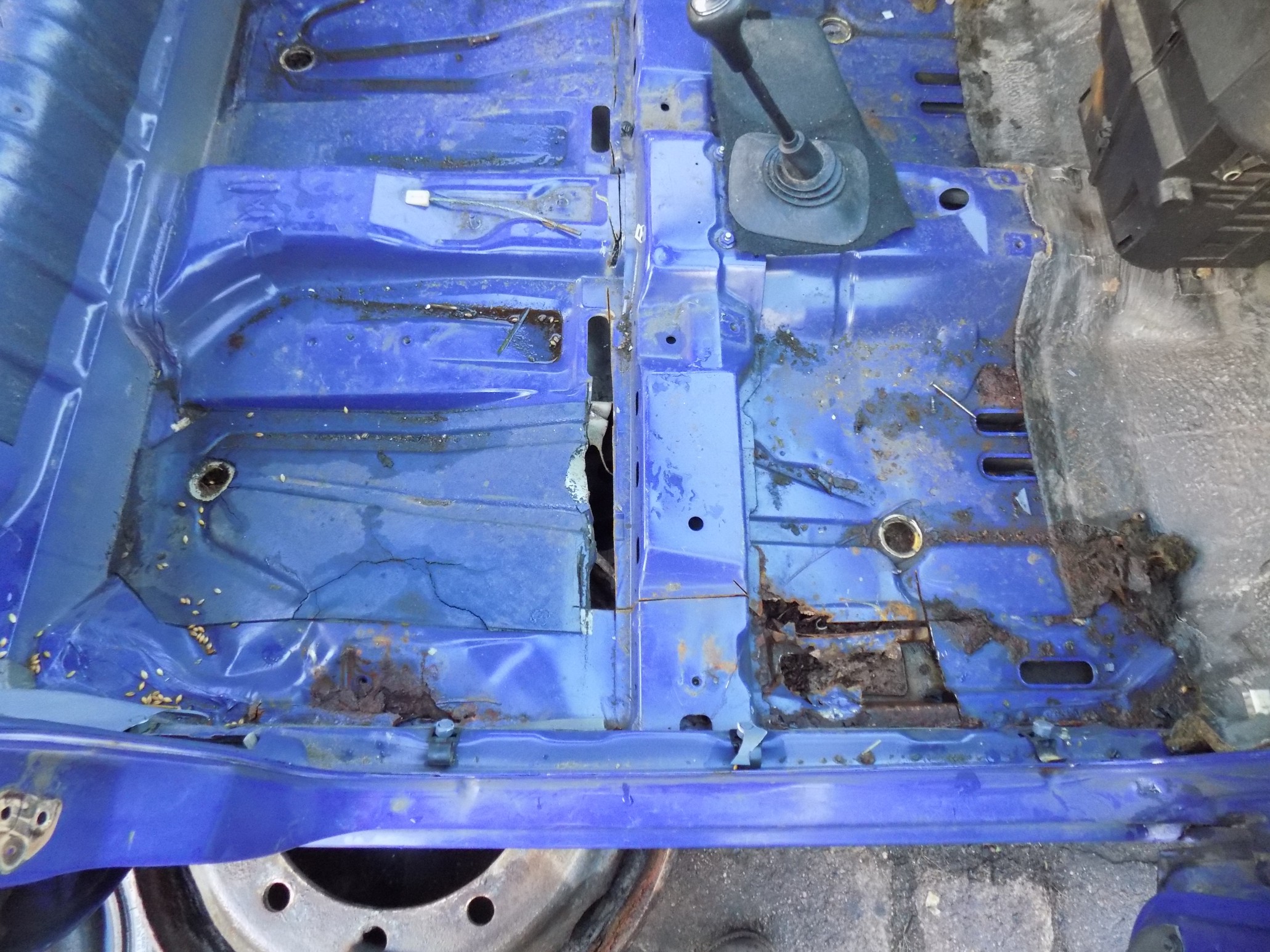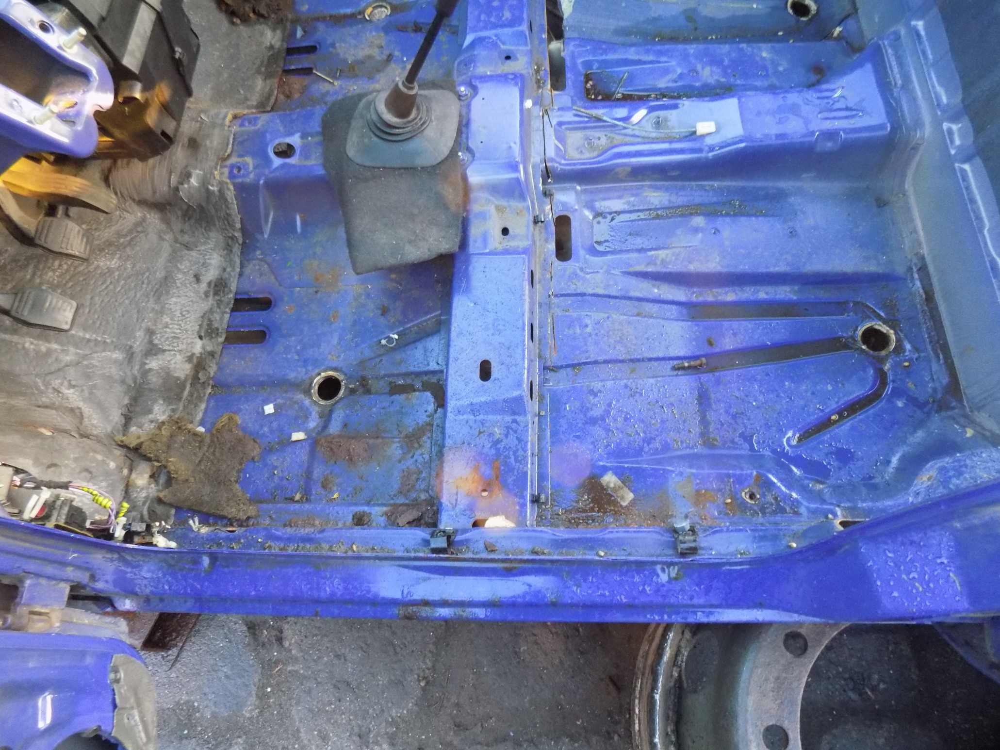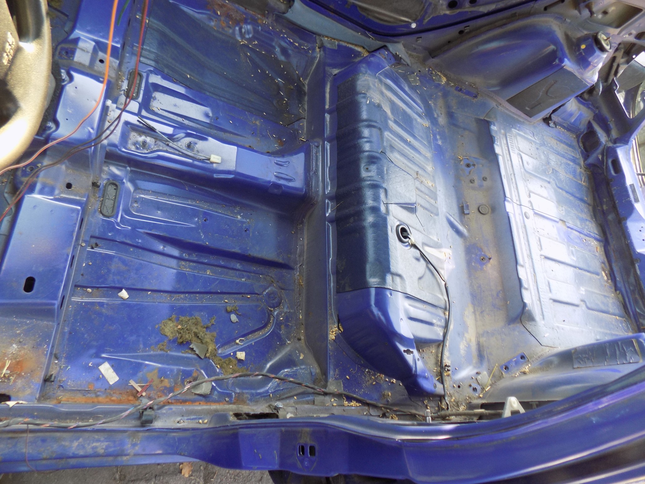 Żeby nie wiercić dodatkowych dziur w podłodze - wyprowadziliśmy nową wiązkę kabli otworem, którym wychodziły kable oświetlenia tablicy rejestracyjnej.