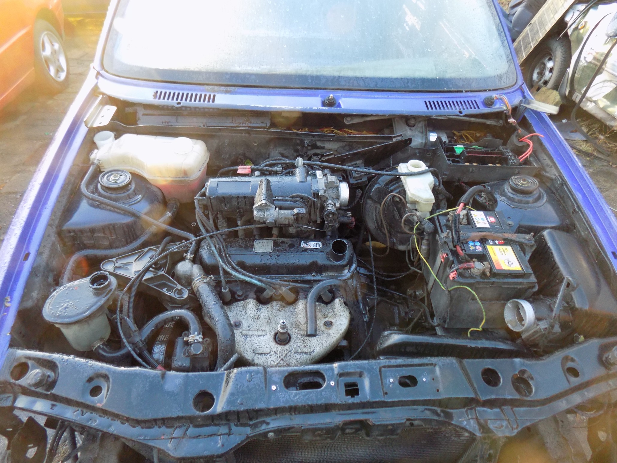 2. Wszystkie elementy wyszlifowałem do idealnie błyszczącego srebrnego metalu, odtłuściłem i pomalowałem granatową farbą typu "DEKORAL - prosto na rdzę". (praktycznie w kolorze mojego nadwozia!!!)