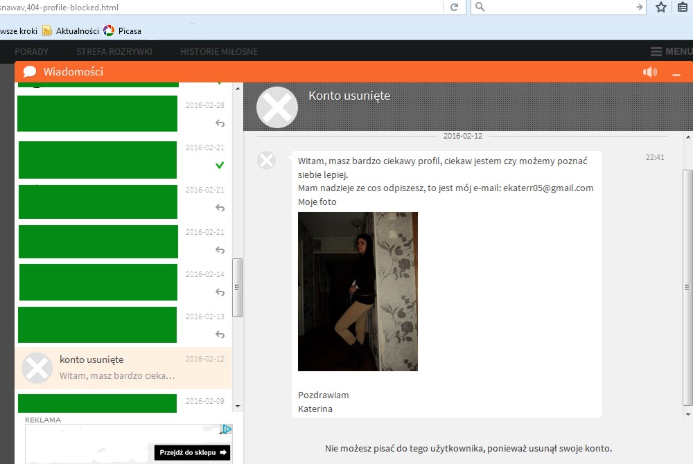 Oczywiście (jak za każdym razem wcześniej) dowiedziałem się, że dziewczyna ma polskie pochodzenie i dlatego chce poznać Polaka, wszystko pisane łamaną polszczyzną z google tłumacza, itd...