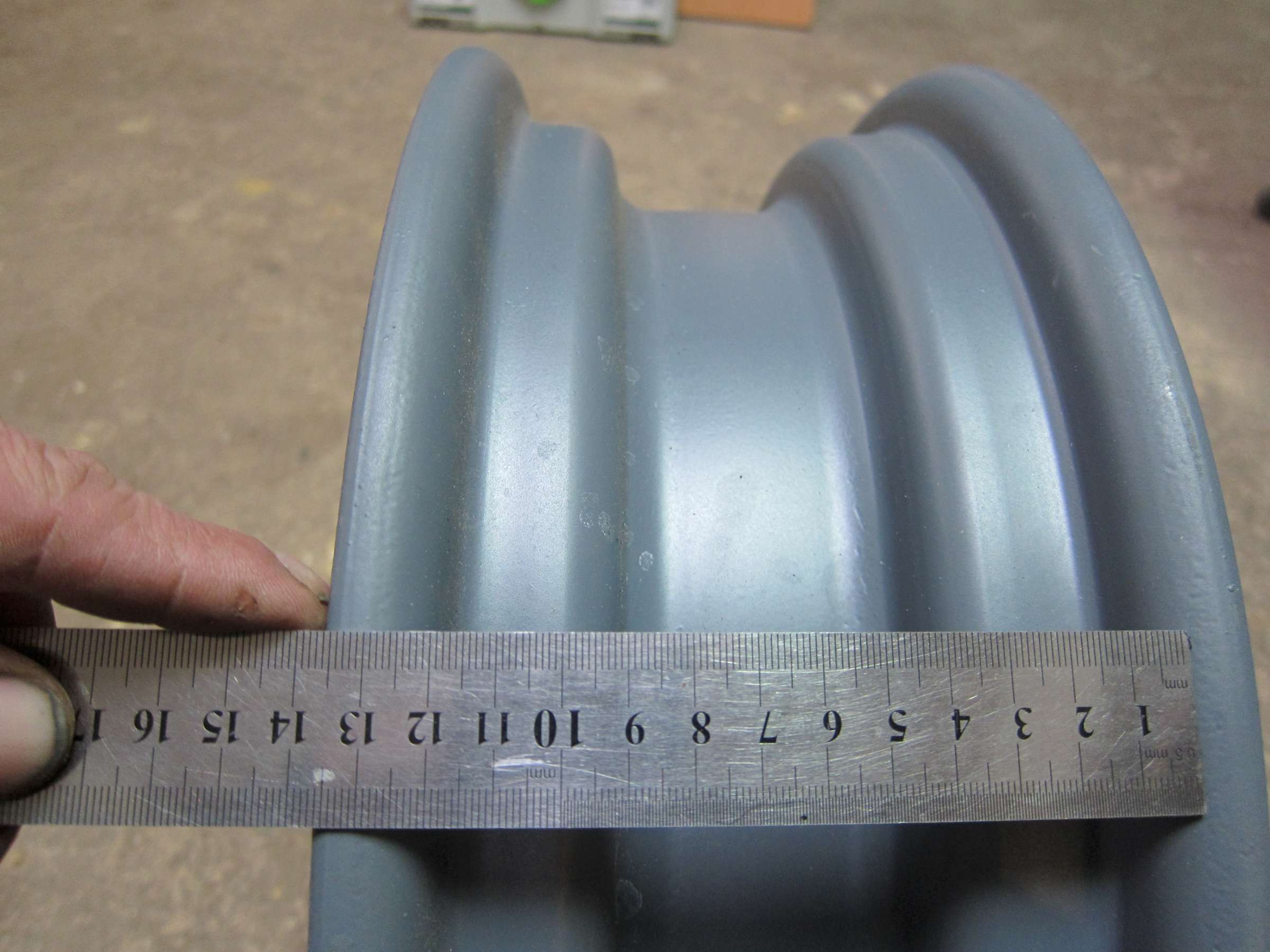 Ta felga jasnoszara jest od nowszego Żuka, już bez blaszek mocujących kołpaki ale była dętkowa bo ma otwór na wentyl fi16mm. W swojej błyskotliwości zaspawałem i wiercilem nowy fi 11 zamiast kupić większej średnicy wentylek