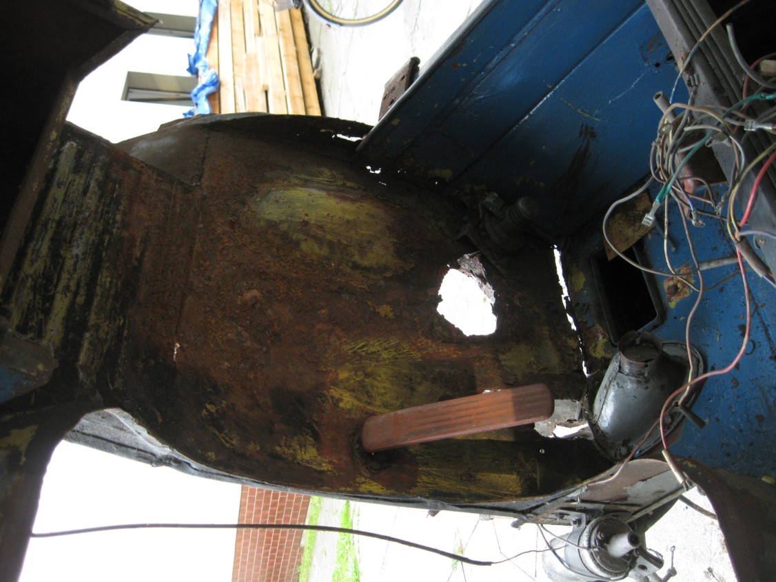 Oglądałem w sobotę bardzo dokładnie płytę podłogową tego Żuka. Wcale może nie być tak źle, jak na początku myślałem. Przegnite były tylko przednie nadkola. Płyta podłogowa była w okolicach tych "podestów" pod siedzeniami cała w smarze a od dołu w smole. Będę próbował ją wyciąć i wymienić tylko te "szyny" pod podłogą (bo one są faktycznie próchnem). Może zrekonstruuję je z czegoś mocniejszego nawet...