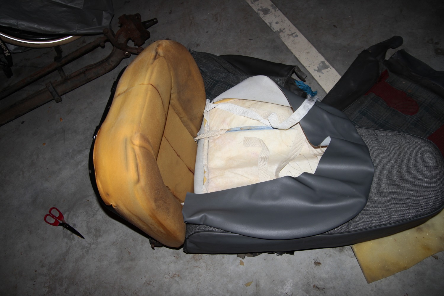 Komentarz: Częściowo rozmontowany fotel kierowcy