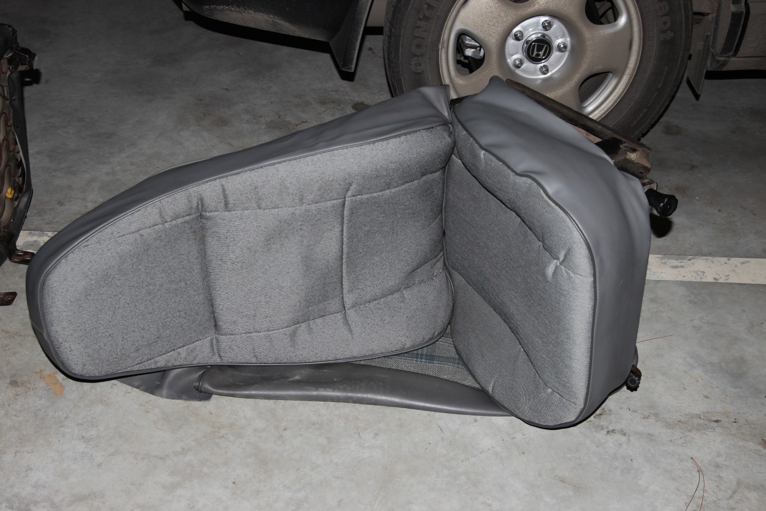 Komentarz: Porównanie nowego pokrowca na fotelu kierowcy ze starym pokrowcem na fotelu pasażera