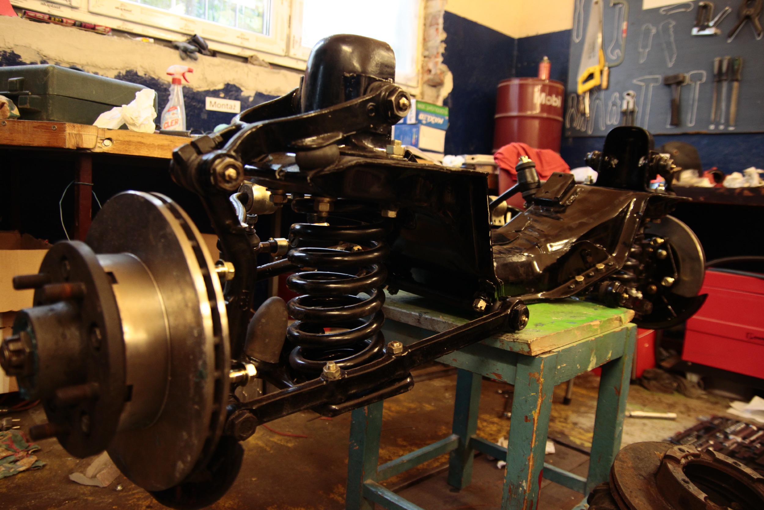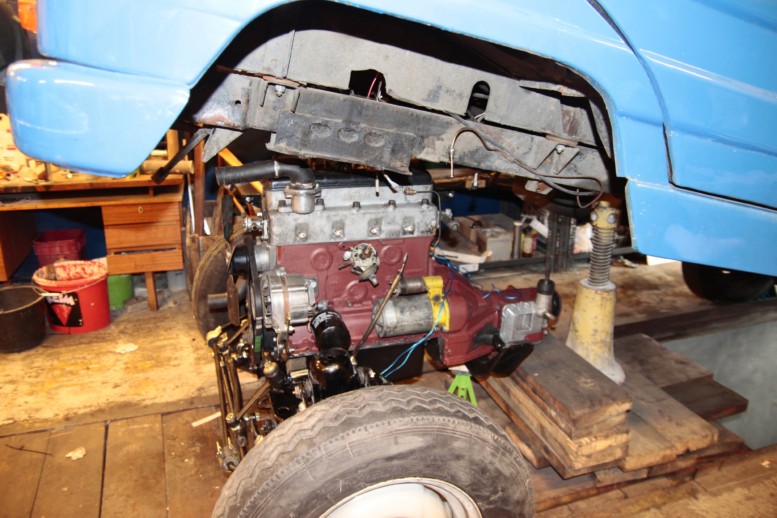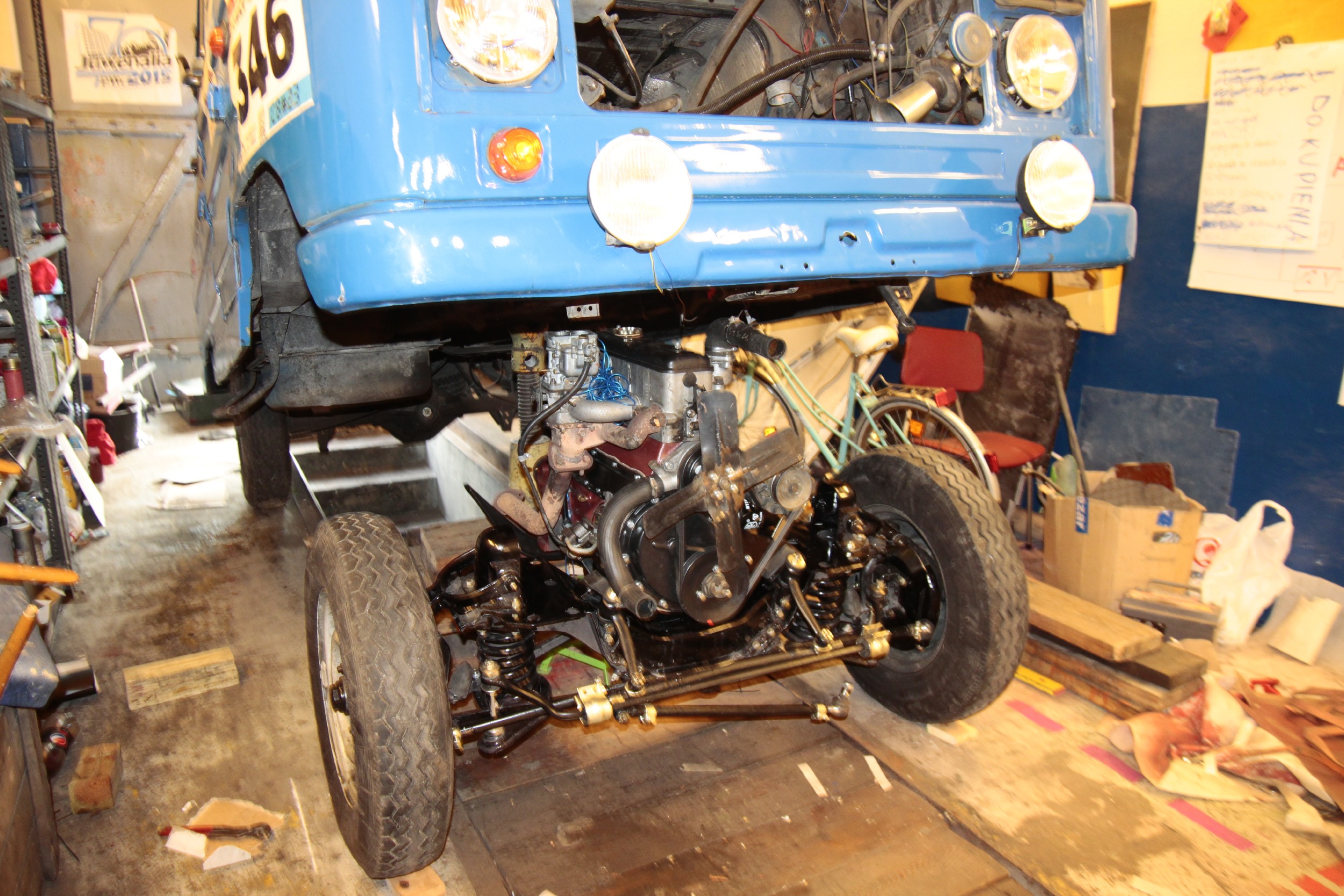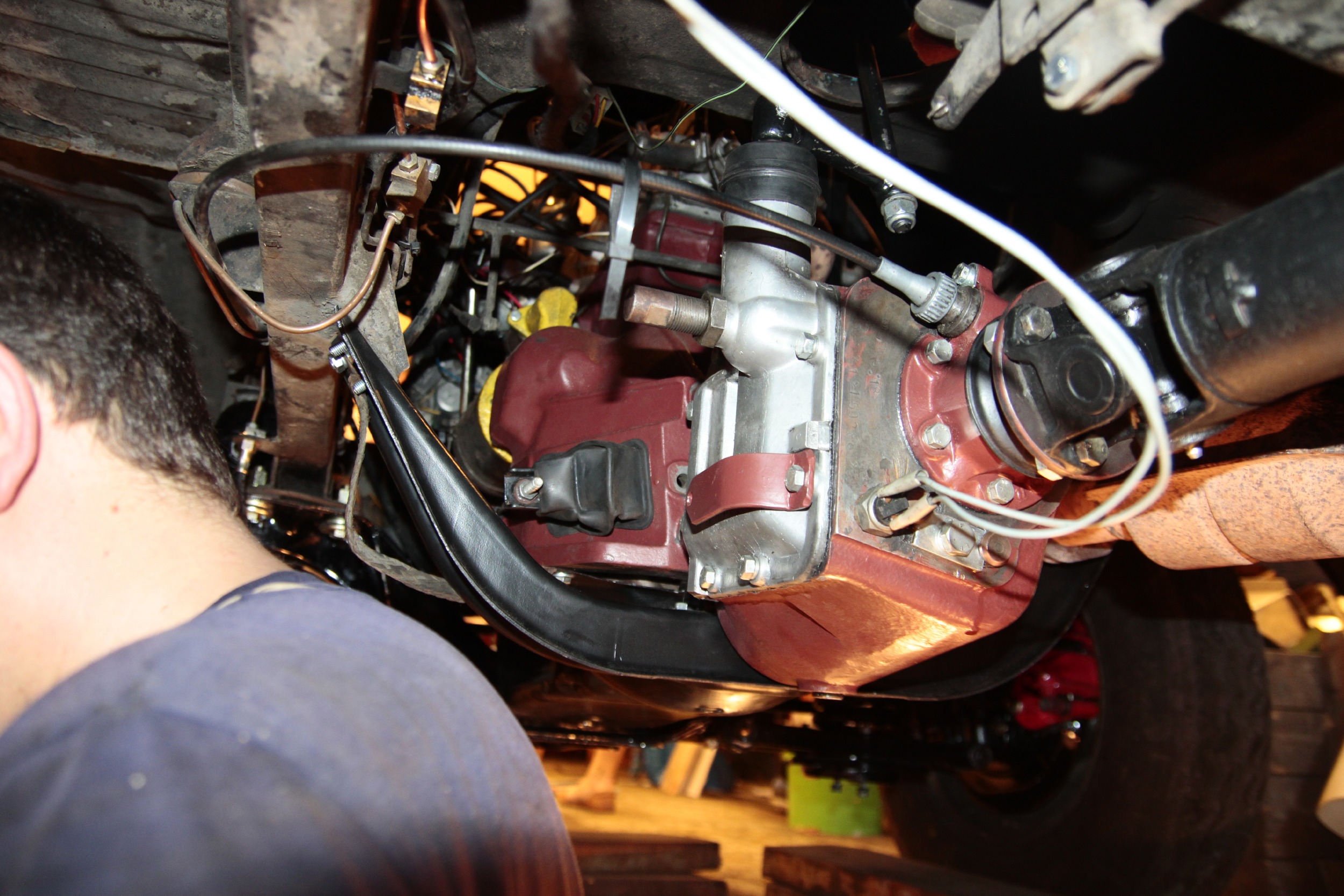 Potem zmagań ciąg dalszy był już nieco lżejszy, bo podpinanie wału napędowego, chłodnicy, całego układu chłodzenia, układu hamulcowego, kierowniczego, sterowania gaźnikiem, elektryki itd... no.. to było kolejne parę dni (popołudnia) roboty.
