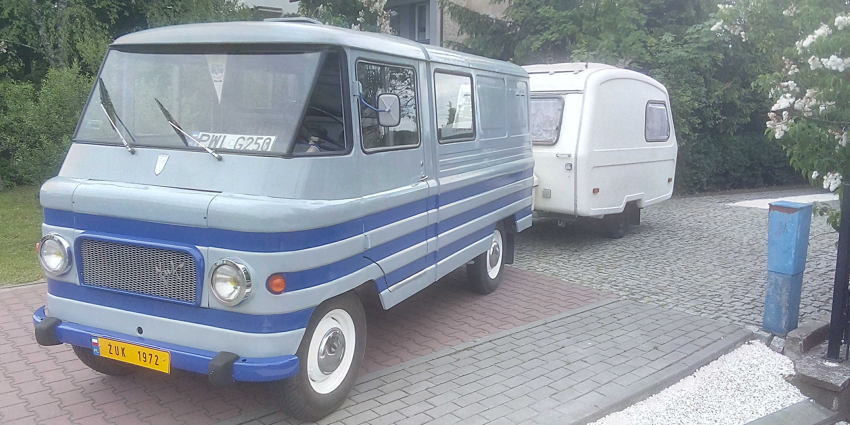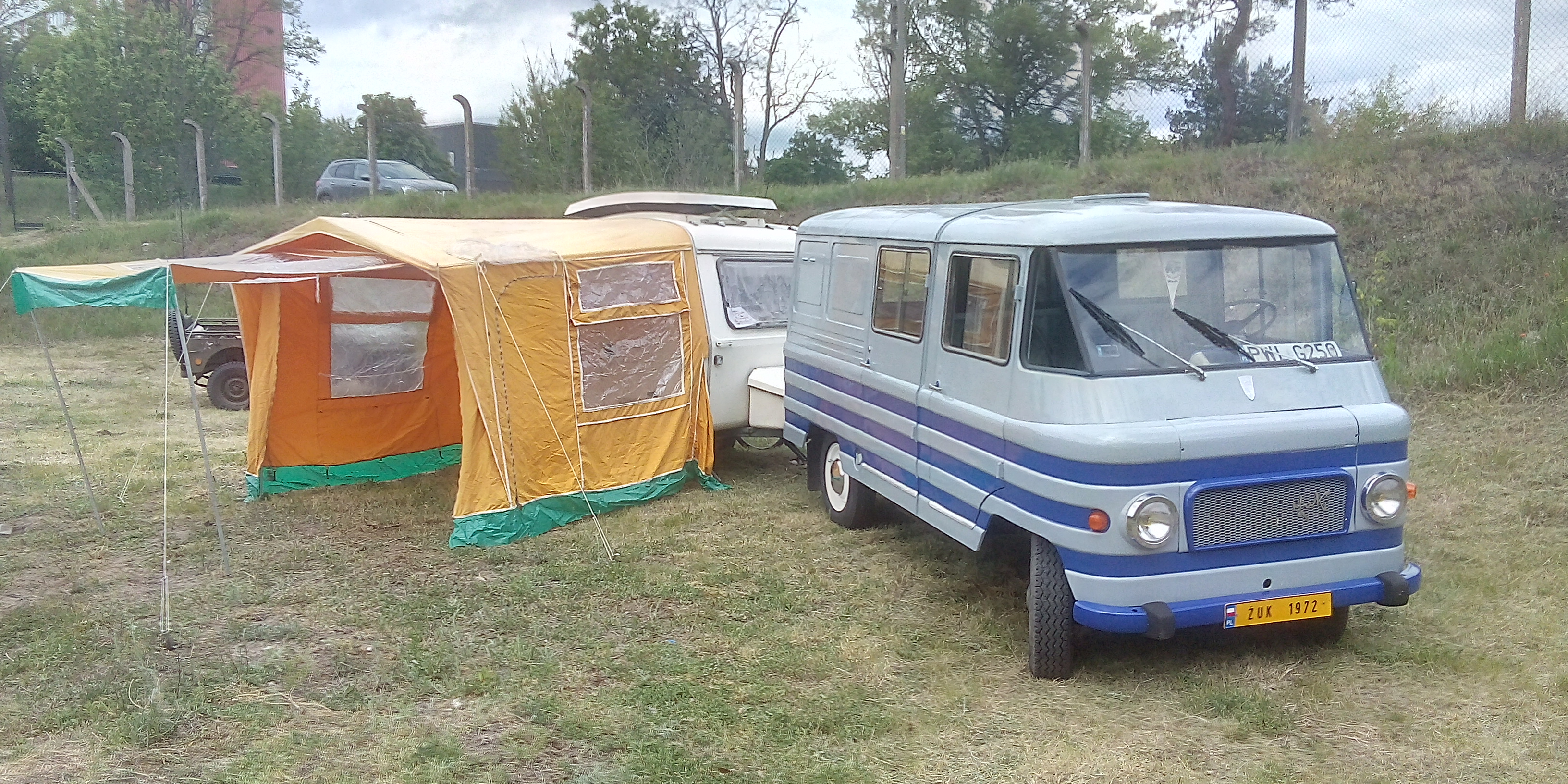 Walnij ja w malowanie zuka i zrób napis - "retro zestaw". Mam podobny zaprzeg, ale tropik do przyczpy robię sobie taki, żeby dało się przyczepę w 90° skręcić i tropik spiąć z dachem Żuka. Zestaw stoi w kształcie litery L i masz kawał "przedpokoju".
