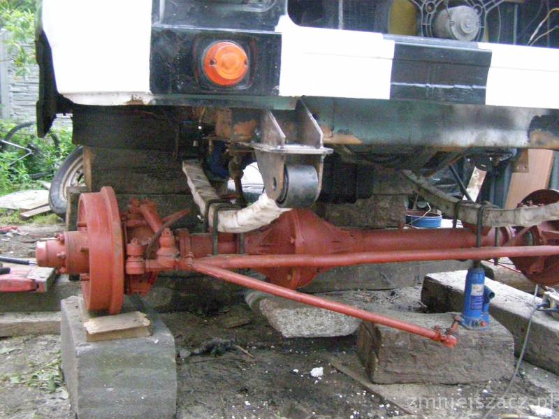 - skrzynia biegów 4 biegi Uaz wraz z reduktorem plus skrócenie wału przed podporą pozwoliło przywrócić napęd tył