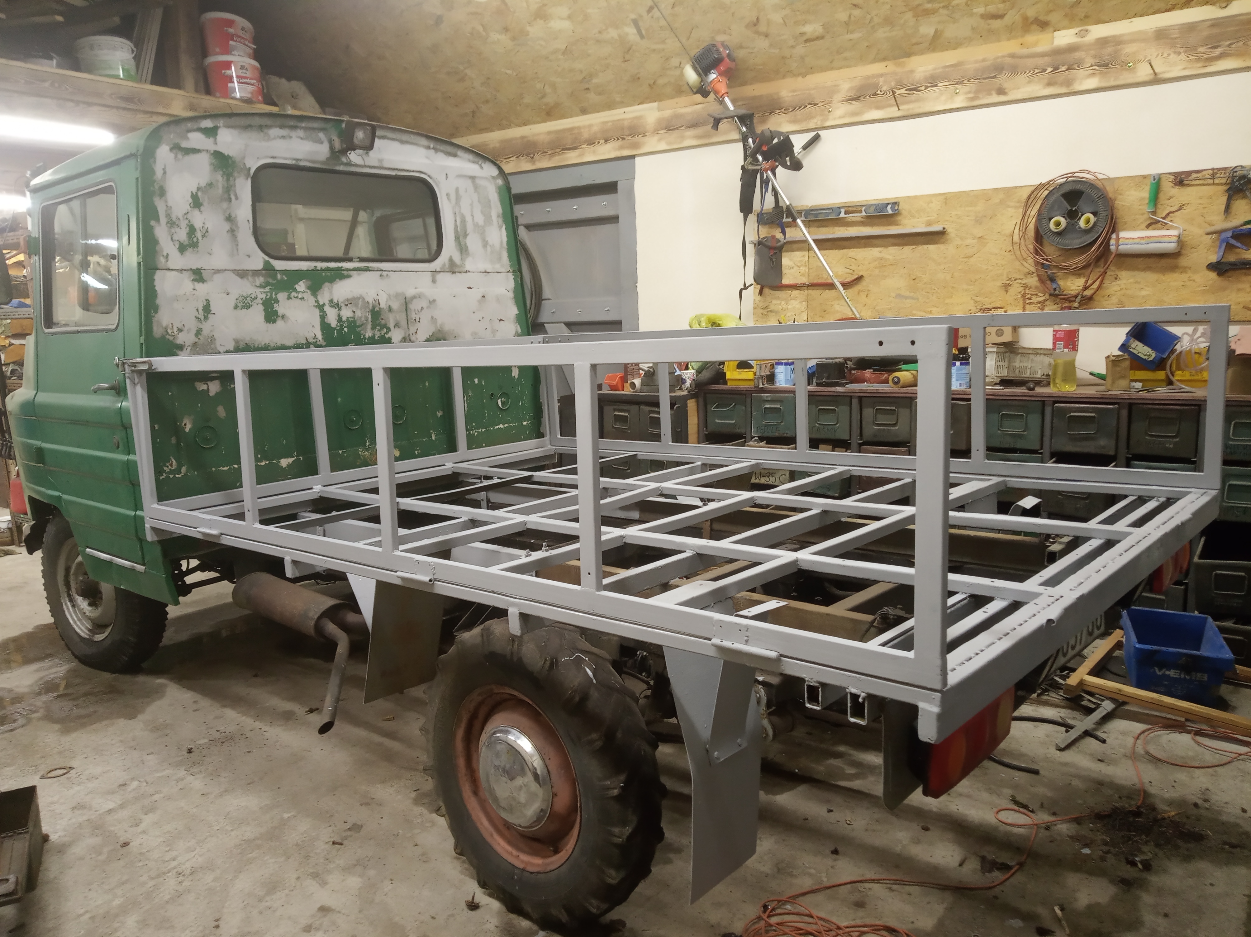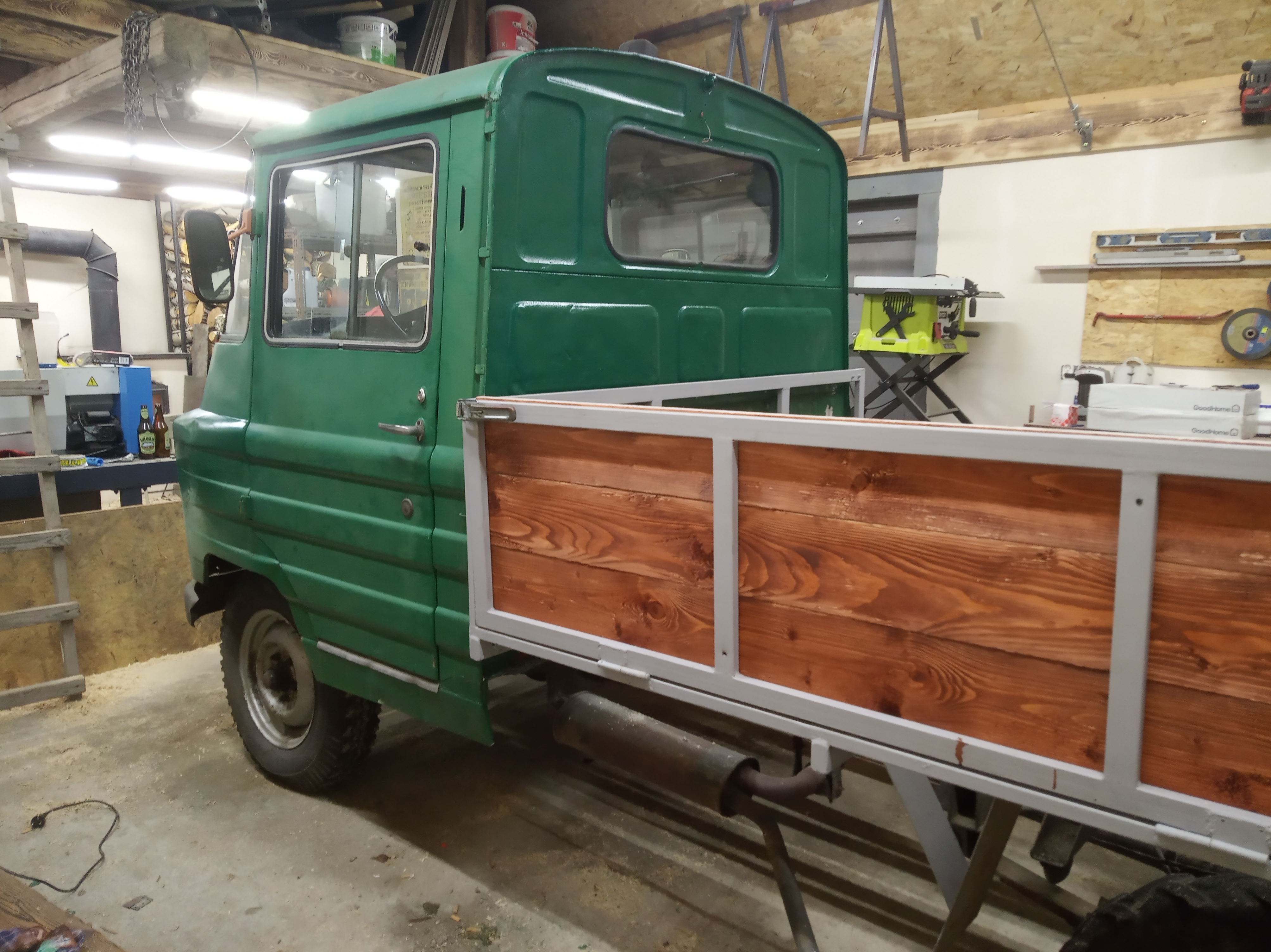 W planach na teraz: usprawnić go w pełni, zabudować konstrukcję paki deskami, by można było wozić towar. Docelowo pewnie powrót do oryginalnej paki, mam od poprzedinego właściciela odebrać resztki tej oryginalnej gnijące w krzakach, stalowe elementy się odzyska, drewno nowe, pałąki są, będą z tego ludzie