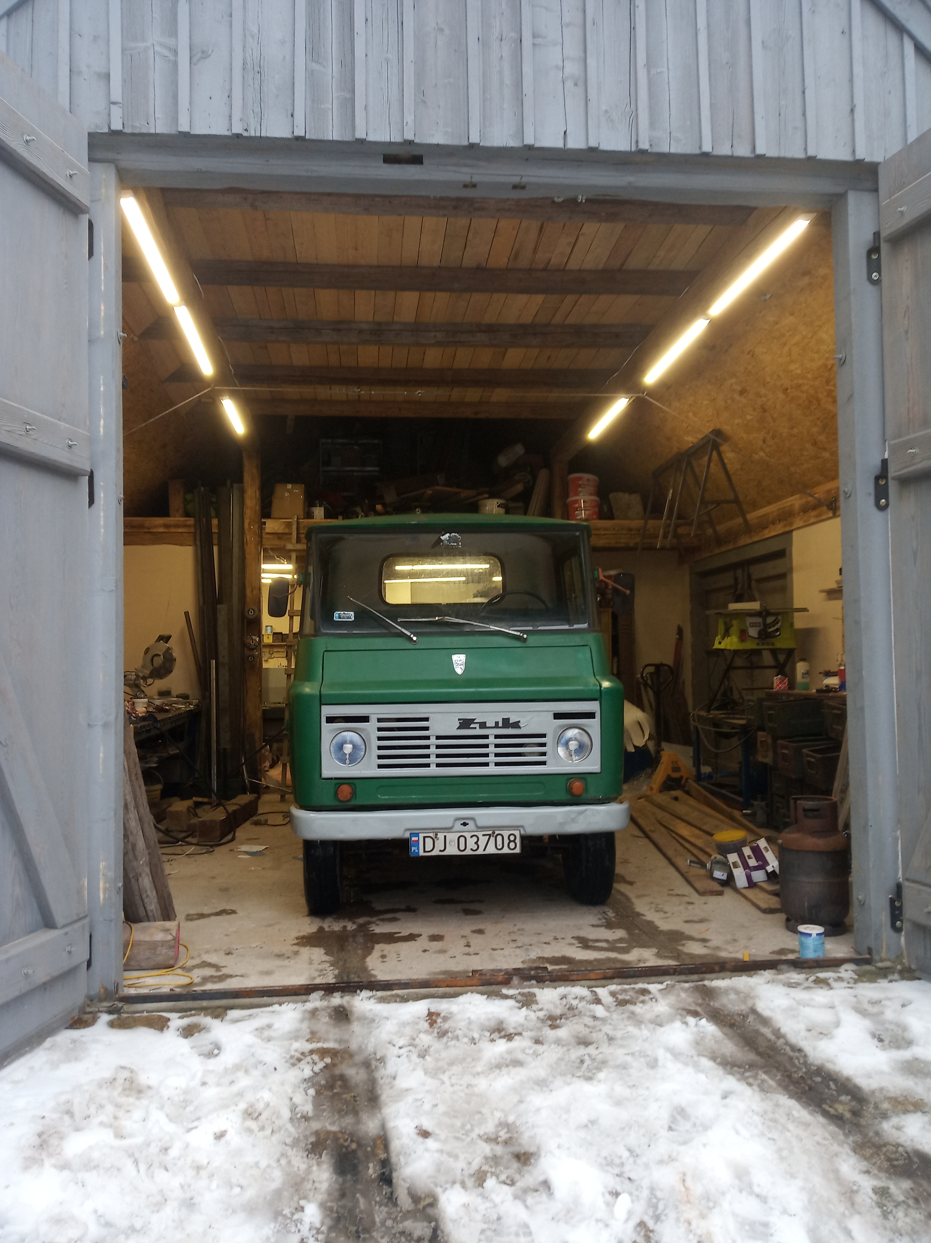 Poprzedni właściciel używał go typowo jako "leśnowozu", woził drewno z lasu, stąd te rolnicze opony z tyłu. Parę lat temu zrobił w nim sporo - wymienił pakę, zrobił zawieszenia, hamulce, dbał jak mógł ale nie swoimi rękami tylko rękami nieżyjącego już starszej daty majstra. Przez to Żuk jest dalej w stanie jezdnym, a nie całkiem w stanie rozpadu, ale przez to również stracił na oryginalności, szczególnie jego tylna część