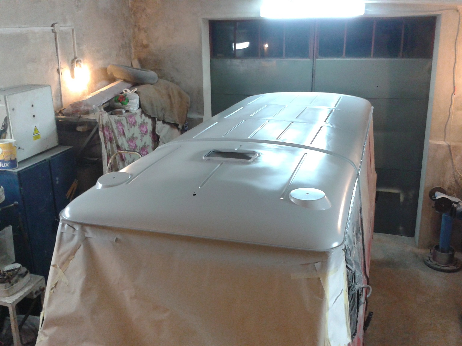 I tak oto lato 2014 minęło, nie udało się pomalować na zewnątrz (choć takie były pierwotnie plany). Z racji dużej wilgotności powietrza Żuczek wylądował w garażu w oczekiwaniu na dalsze prace: