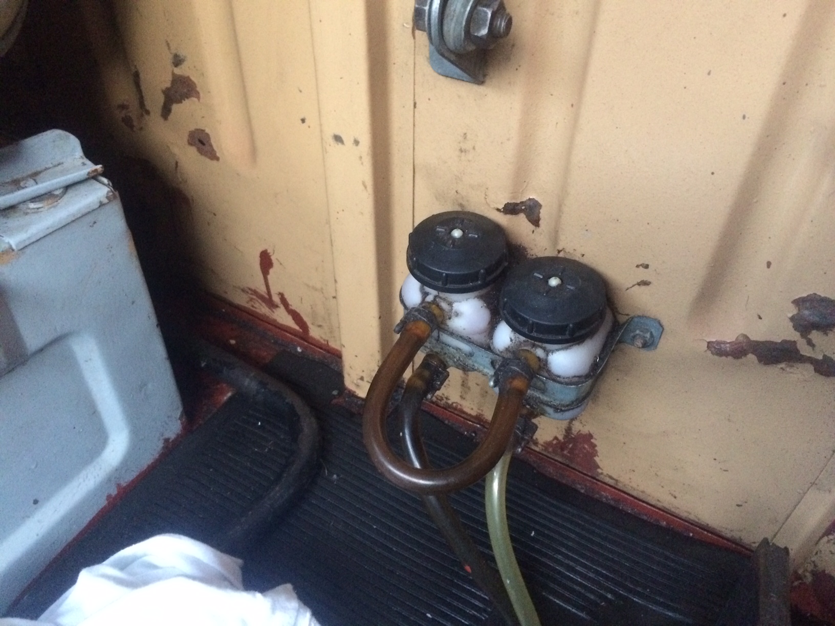 Powiedzcie mi jeszcze tylko, czy spotkaliście się z dwoma zbiorniczkami w kabinie, przy lewarku hamulca ręcznego. To zbiorniczki płynu hamulcowego? Jeżeli tak, to który ma być napełniony a moze dwa? Czeski film dla mnie. Prosze o pomoc :-)