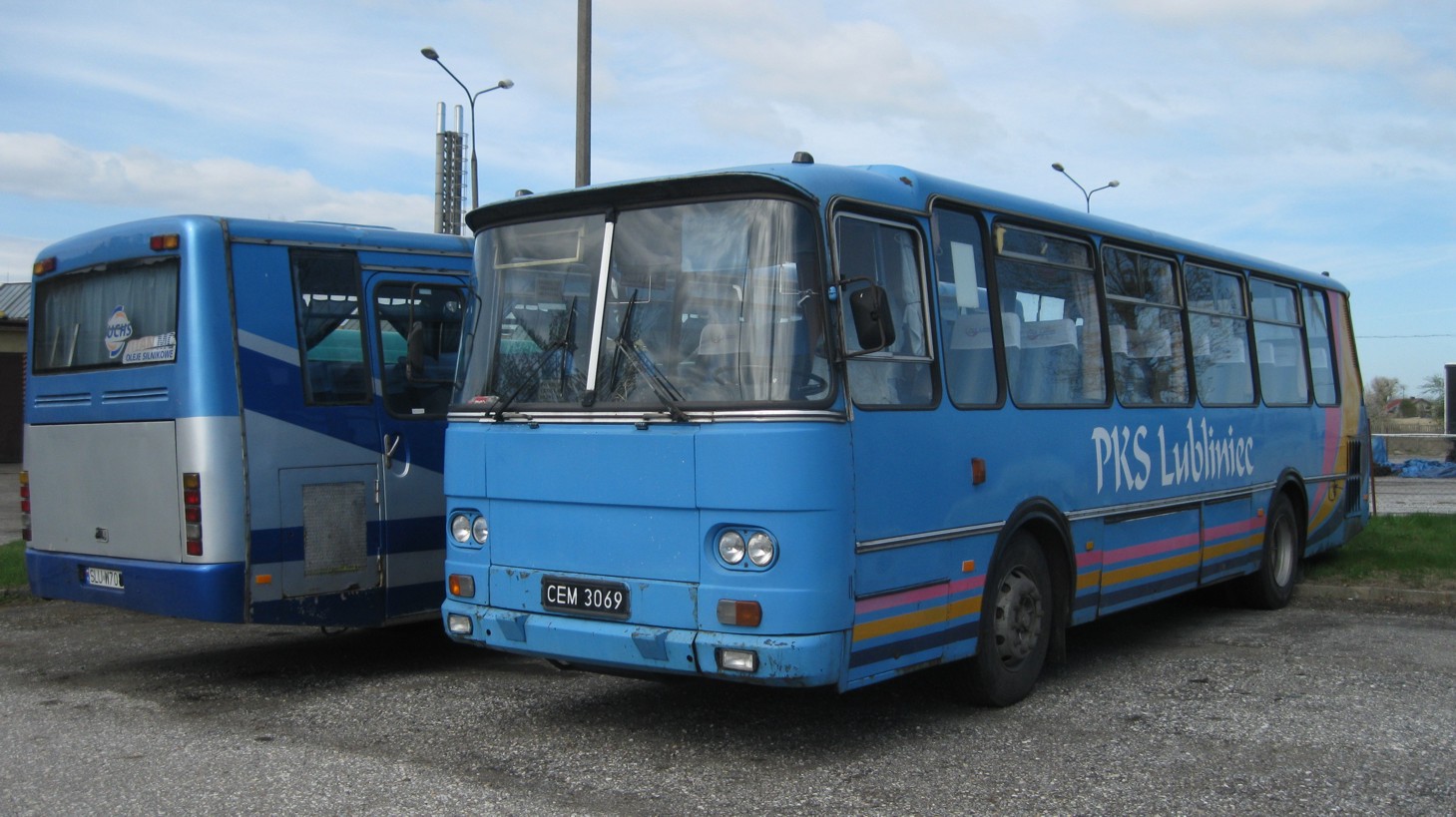 JELCZ L11 "FACELIFTING" - egzemplarz o numerach: SLU 47CU - jeździł chyba w PKS Lubliniec najkrócej. Bo tablice rejestracyjne już "nowe", a około 2004 - 2005 prawdopodobnie firma wyzłomowała ostatniego "Berlieta". Wtedy odetchnąłem z ulgą, bo w identycznej maszynie na trasie z Dobrodzienia do Częstochowy (55km) o mało co nie nabawiłem się choroby morskiej. Wóz wyglądał po faceliftingu nowocześniej, ale w środku był nadal PRL: - ławki zamiast siedzeń na których drgała tapicerka od drgań centralnie umieszczonego silnika...