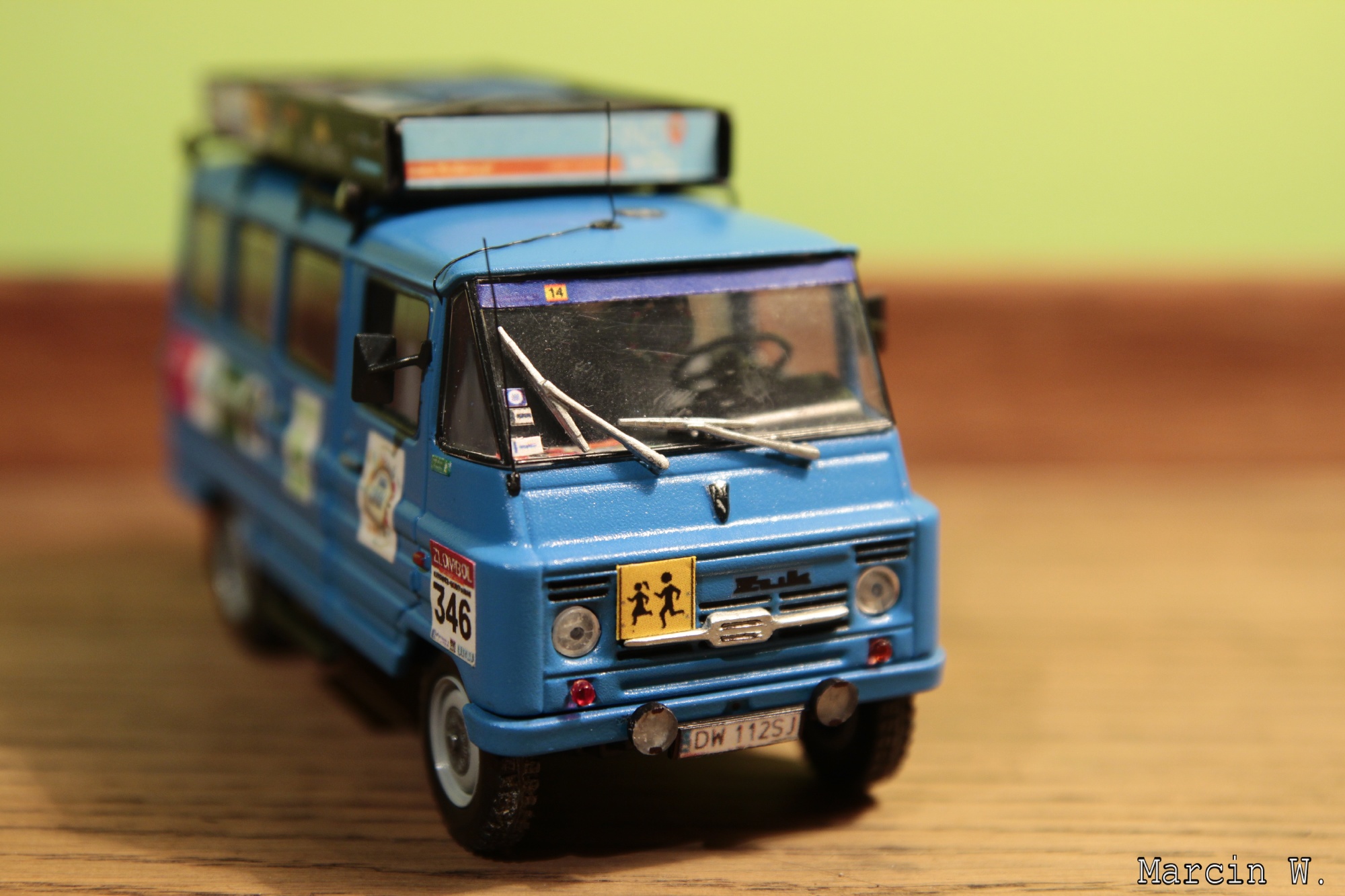 Nawet nie chcę myśleć, jak naklejał winiety na przednią szybę... Perfekcyjnie odwzorował bagażnik dachowy z reklamami, do tego ta antena CB na dachu, tablet i mapy na kokpicie... wszystkiego dopełniają zasłonki.... A zresztą... zobaczcie sami i możecie mi tylko na słowo uwierzyć, że na żywo wygląda jeszcze lepiej!