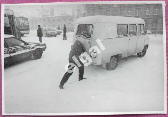"Samochód poznańskiej ekspedycji „Zaćmienie 76” wśród śniegu pod szczytem Ułu-dag. Poniżej: środkowa faza zaćmienia fotografowana w odstępach minutowych od 13h38m do 13h45m. Szczegóły w artykule H. Korpikiewicz. "