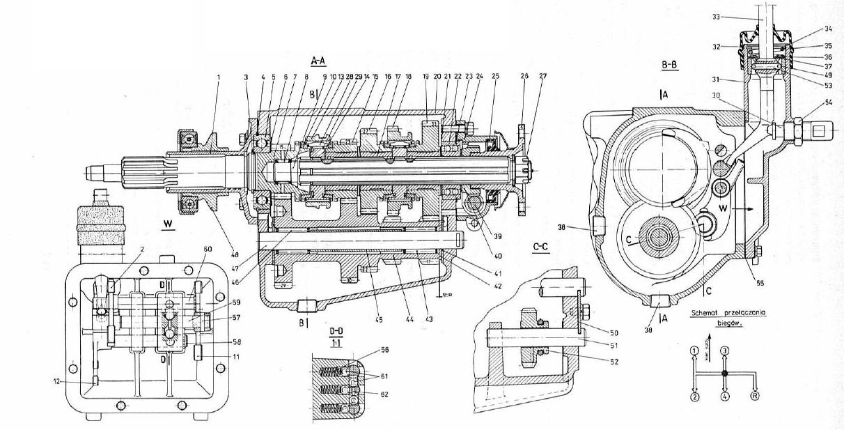 Teraz mam kolejny problem, tylko że że skrzynią IV biegową. Szukam i nie mogę znaleźć schematu jej budowy i tym samym nie potrafię jej złożyć :(