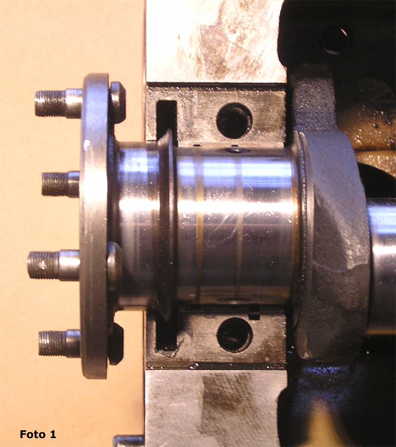 Podczas składania wału korbowego zauważyłem trochę dziwną sprawę : Ostatnia podpora wału , tam gdzie wszyscy płaczemy , że są największe wycieki jest trochę chyba źle zaprojektowana . Popatrzcie na zdjęcie czopu wału korbowego . Jest duża powierzchnia przylegania panewki , potem odrzutnik oleju i powierzchnia po której ślizga się słynny sznur łojowy . Dziwne jest to , że otwory w wale korbowym te doprowadzające olej z wnętrza wału i te wylotowe do miski zarówno w wale jak i w pokrywach panewek mają średnicę 6 mm. zaś same panewki mają otwory 3,5 mm. Zdecydowałem się rozwiercić otwór w dolnej panewce , tej odprowadzającej olej do miski do średnicy 6 mm. w ten sposób myślę , że zmniejszy się ciśnienie oleju w rejonie sznura i być może wycieki będą mniejsze .