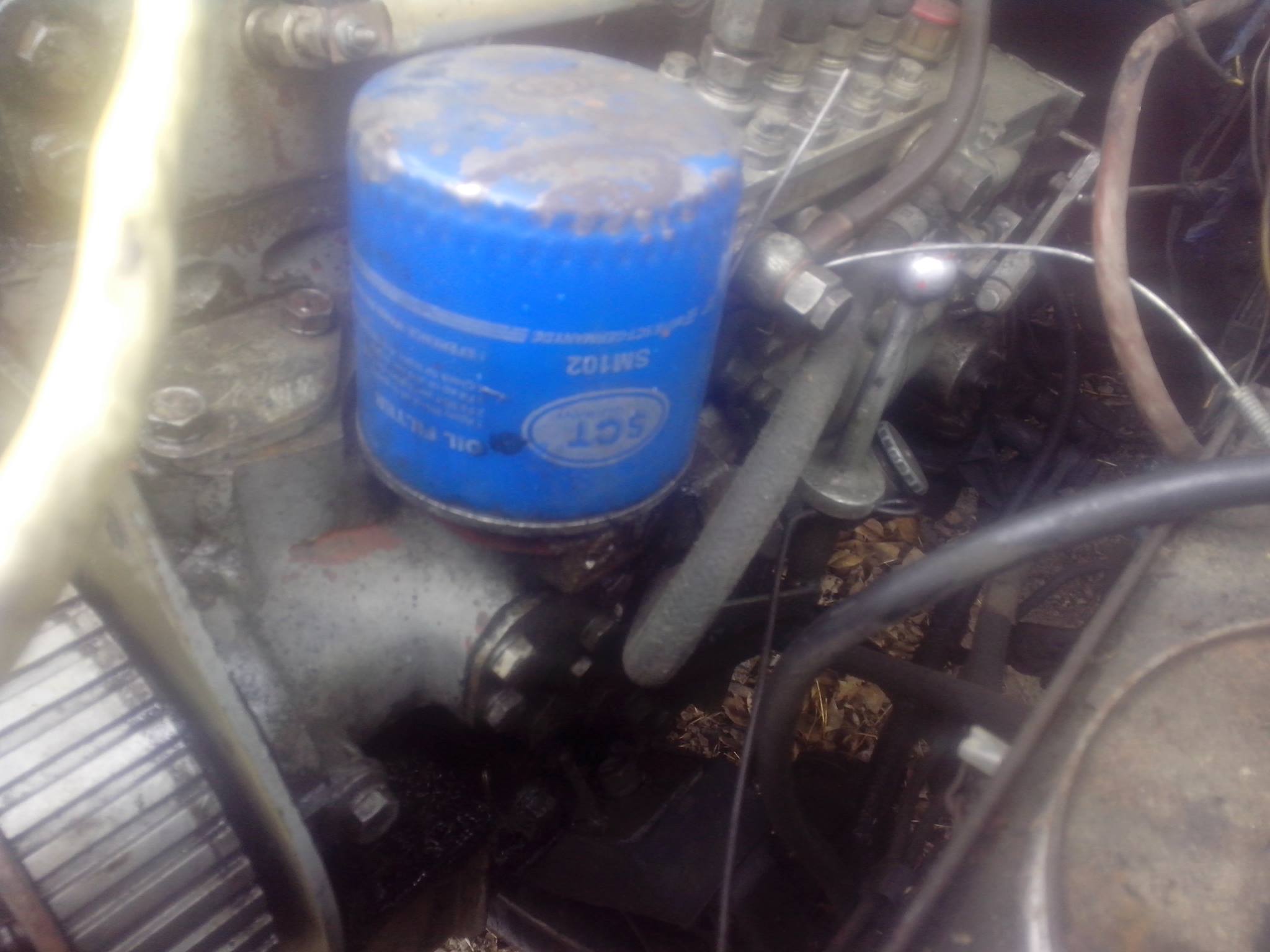 Jak ktoś może, to niech się zamienia za tego prototypa, bo to ciekawy okaz.W podstawie filtru oleju widać jakąś zaślepkę, nie wiadomo do czego, a najważniejsze, że pompa wtryskowa ma zamontowaną fabryczną pompkę zasilającą, napędzaną z wałka krzywkowego, a miejsce na pompkę membranową, jest zaślepione.Ciekawe, czy to jest fabryka, czy ktoś zamontował pompę z zetora, co jest możliwe, tylko trzeba chyba zmieniać elementy tłoczące na inne, żeby dawki się zgadzały.Ciekawy egzemplarz.