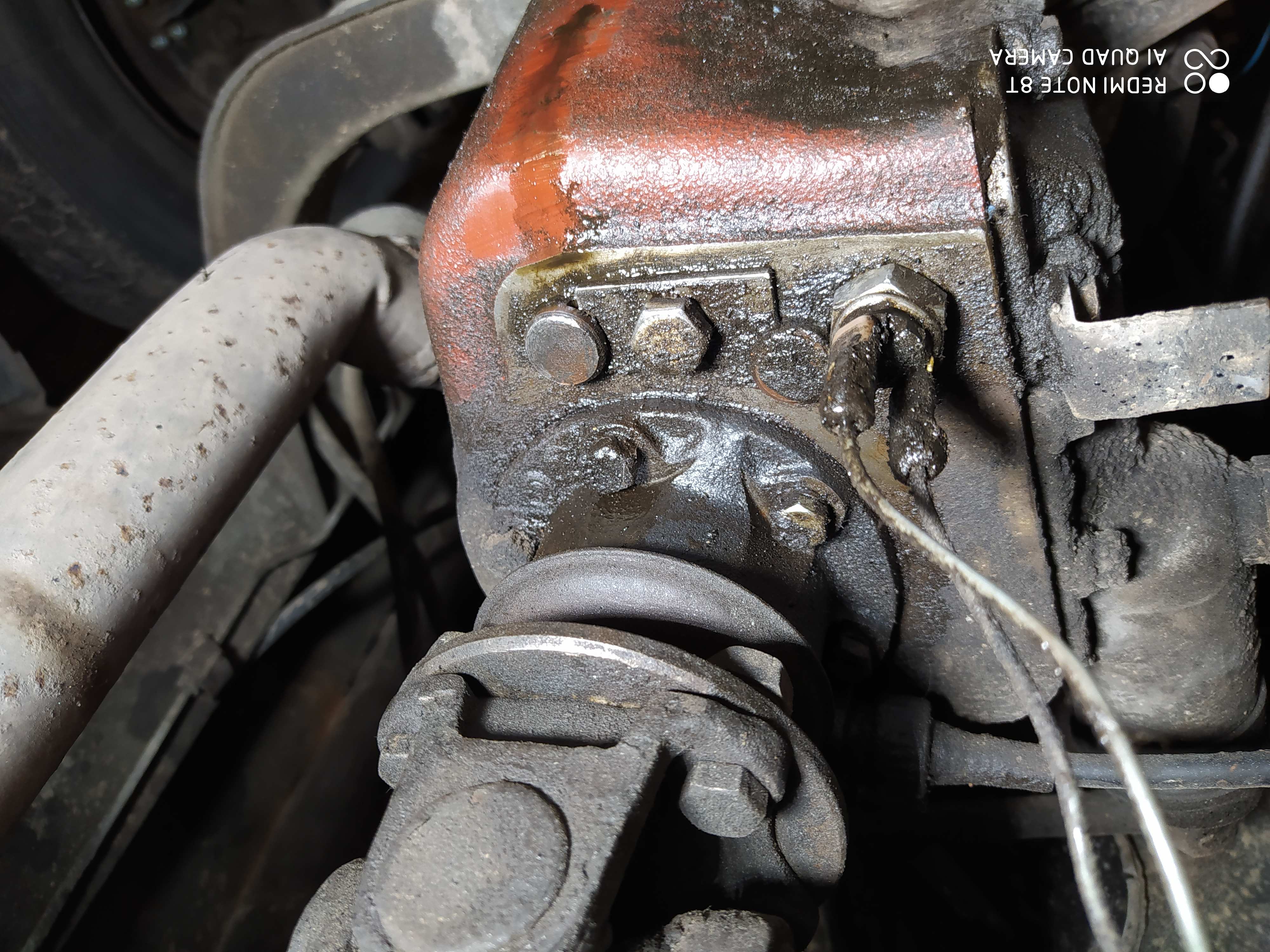 Witam wszystkich mam mały wyciek że skrzyni 4 biegowej silnik Andersa. Jak widać na załączonym zdjęciach nie jest to wyciek z wyjścia na wał tylko z pod takiej blaszki między dwoma naciętymi bolcami.