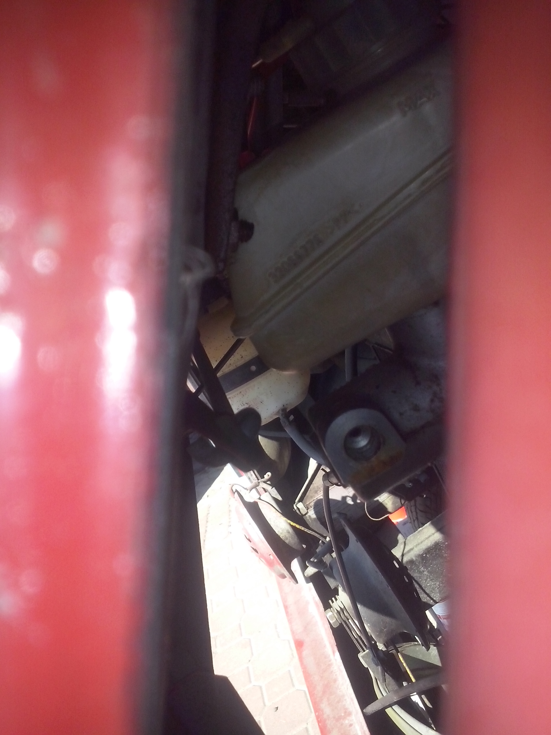 Maksymalny skręt na starej nastawie - mała dziura i nie ma odpowietrznika! Mniejszy kąt i większa dziura - scięty przewód! To masakra jest! Bez wycięcia belki taki swap to proszenie się o guza! Powiedziałem A, więc temat dokończę, ale absolutnie odradzam przeróbkę bez wyciągania i wycinania belki.