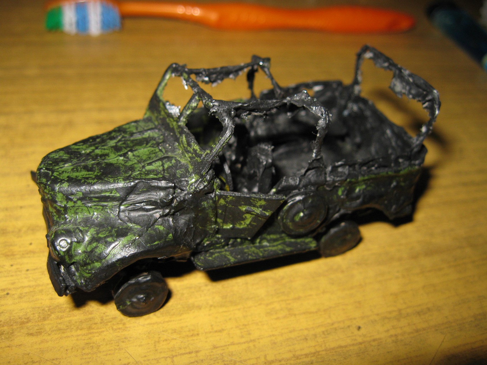 Pytanie - jak zrobić model wraku samochodu, ale nie taki "rozszabrowany", stojący gdzieś na "zapyziałym" podwórku, w którym brakuje tylko kół, reflektorów, foteli, szyb i zderzaków.