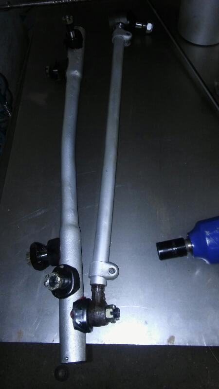 Udało mi się dzisiaj zregenerować zwrotnice. Z zapasów wykopałem nowe tulejki, łożyska, podkładki i sworznie. Stare sworznie właściwie nadawały się do ponownego montażu - zużyły się tylko tulejki. Na fotce dwa rodzaje - po lewej tulejka bez rozwiercania, po prawej do rozwiercenia. Podobno jest jeszcze jakaś z grubszą warstwą teflonu - bez rozwiercania, ale... Niestety w obydwu zwrotnicach otwory na tuleje nie były idealnie w osi - widać to było bardzo dobrze po rozwierceniu. Także wbijanie sworznia w te tulejki bez rozwiercania kończyło się ich uszkodzeniem i zablokowaniem sworznia. Po rozwierceniu tych po prawej sworznie weszły z delikatnym oporem i zwrotnice pracują bardzo lekko bez jakichkolwiek luzów, więc polecam taką opcję. Rozwiertak fi 25.