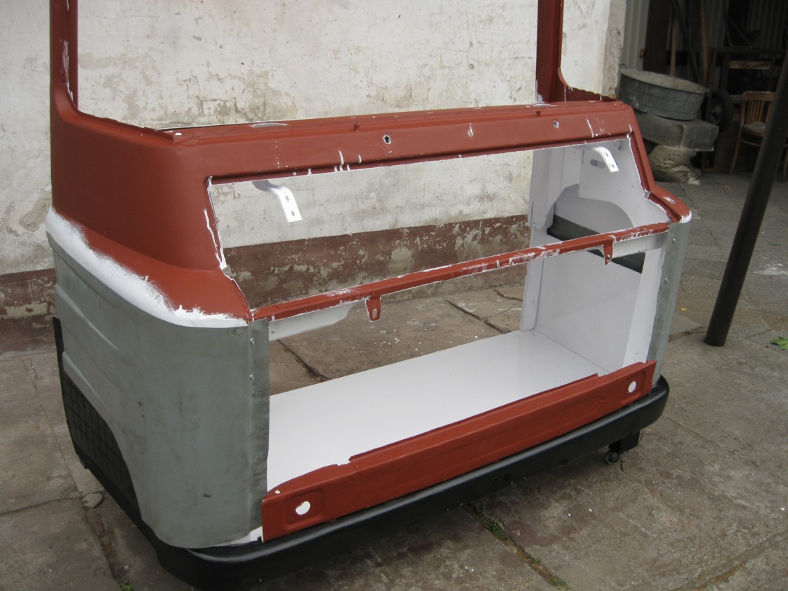 Najpierw chciałem na oryginalny kolor, granatowy - taki sam, na jaki ostatni raz kabina była pomalowana "za życia", ale trochę za ciemny wydawał się ten granat jak na coś, co ma stać na stałe w pomieszczeniach jako "atrakcja". Wcześniej kabina była niebieska, jak teraz i też była chyba całkiem ładna 8)
