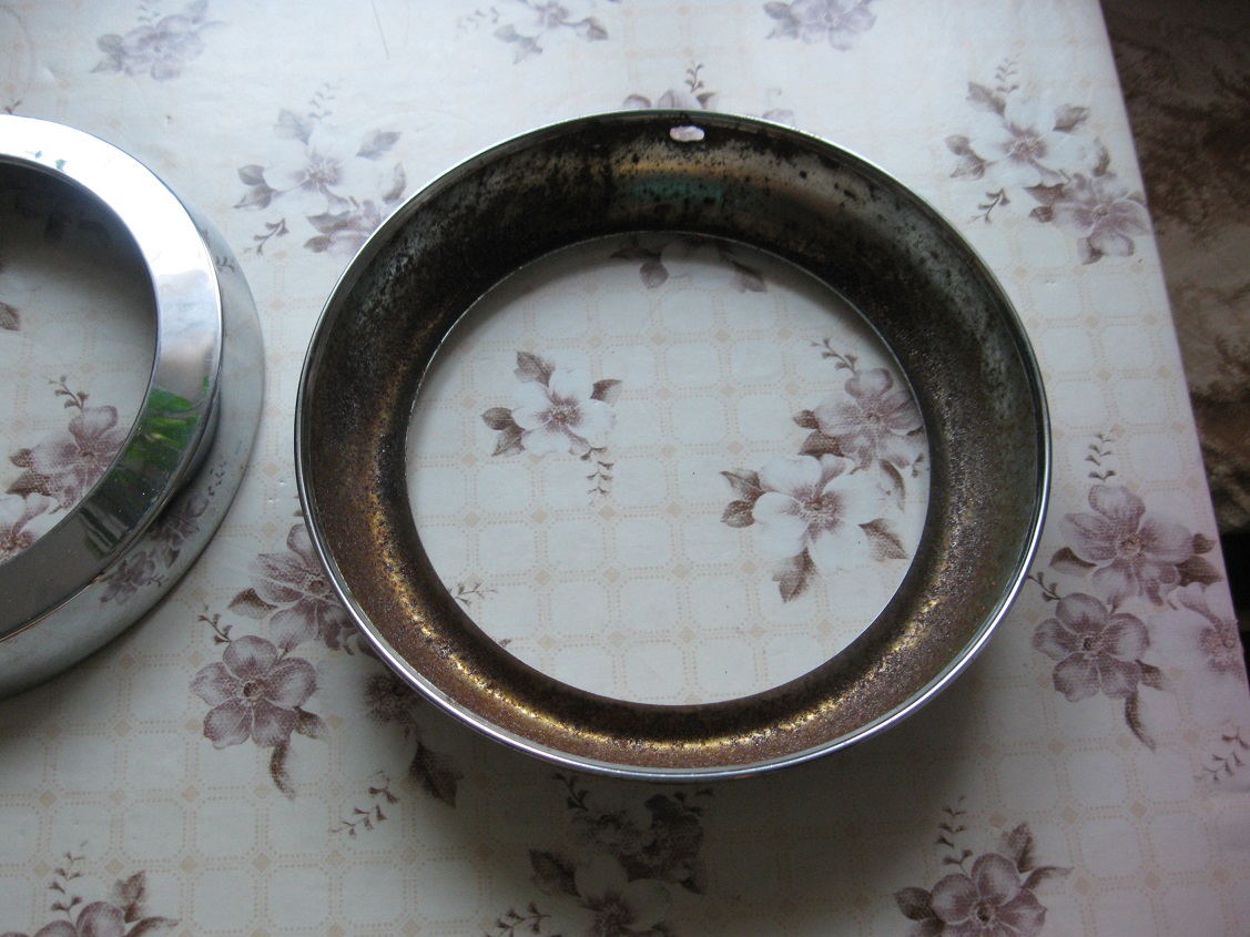 Od ramki "nyskowej" ma jakieś ok 5mm większą średnicę zewnętrzną - więc do miski "nie podejdzie". Te w lampach w Nyskach i Syrenkach miały okrągły otwór na śrubkę - tutaj jakiś musiał być zatrzask - więc do miski od Nysy/Syreny nie pasuje...