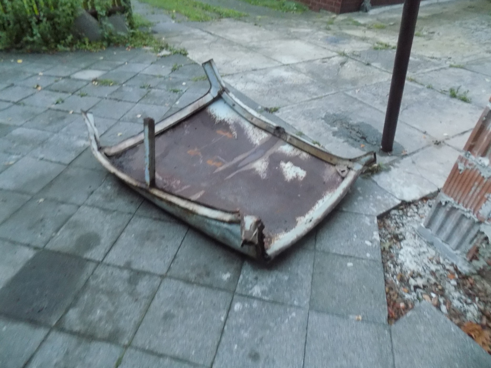 Tak - wiem doskonale, że jest to na 1000% wrak w sensie jako cały dach i w całości na "przeszczep" do auta się nie nadaje, ale po dokładniejszych oględzinach ma jeszcze kilka zdrowych miejsc, które można z niego wyciąć i wstawić w formie "łatek" w dachu mojej Syrenki 102