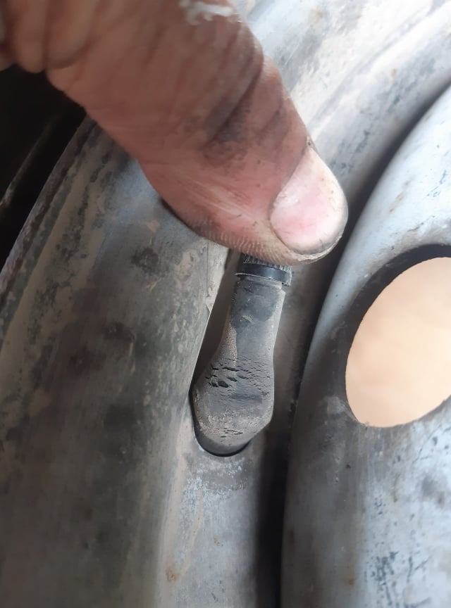 No miejsce na flaka idealne, pneumat, bałwanek, wyciągam i zmieniam zapas zapas. Ogladamy zaworek jest Stary spękany. Podobnie jak pozostałe 3 na innych kolach. Kupiłem miesiąc temu nowe opony za 1000zł, zawiozłem do wulkanizatora kola żeby zmienił. Ile on zaoszczędził zostawiając mi 20 letnie zaworki w felgach?