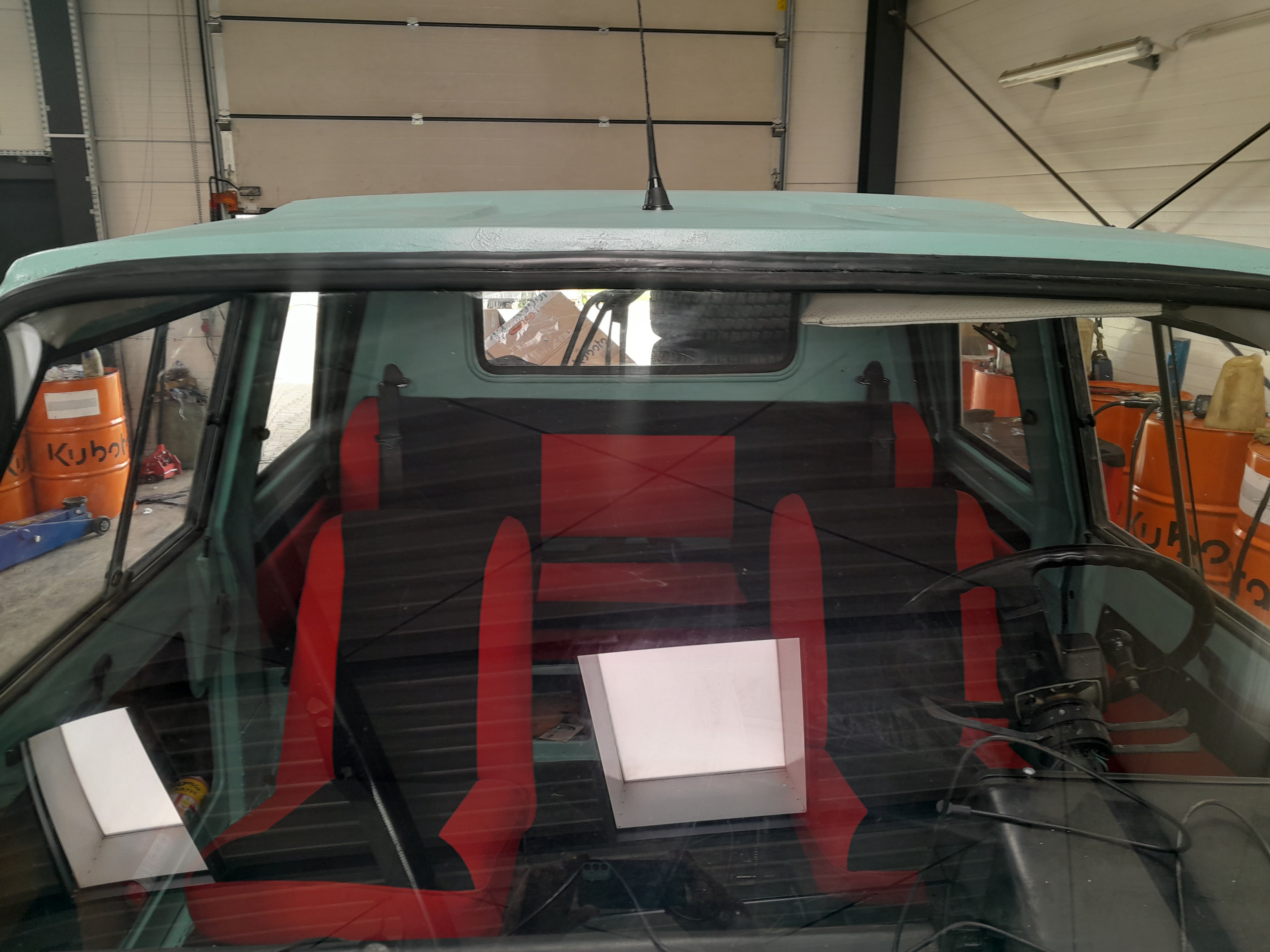 Tapicerka, przeszycia jak w oryginale, kolory odwrócone, a materiał dobrany z palety Fiata z aut dostawczych.