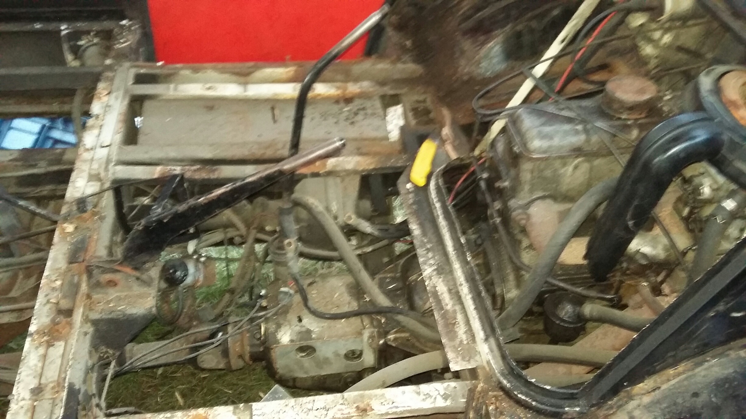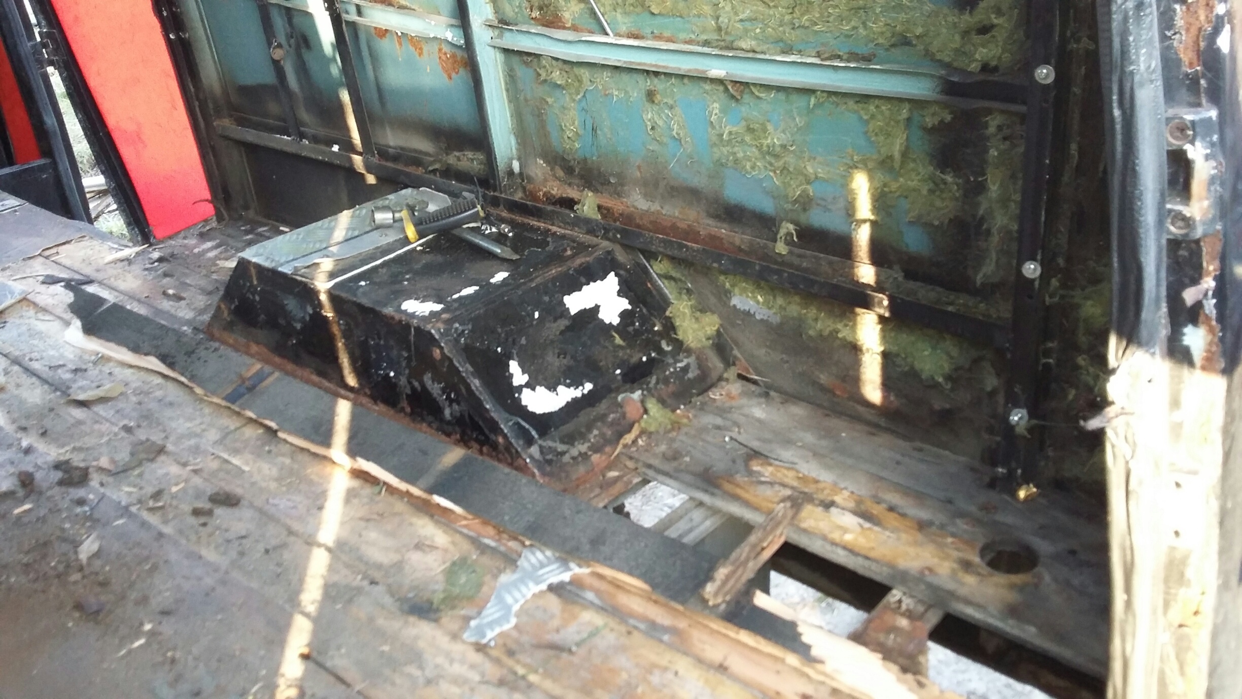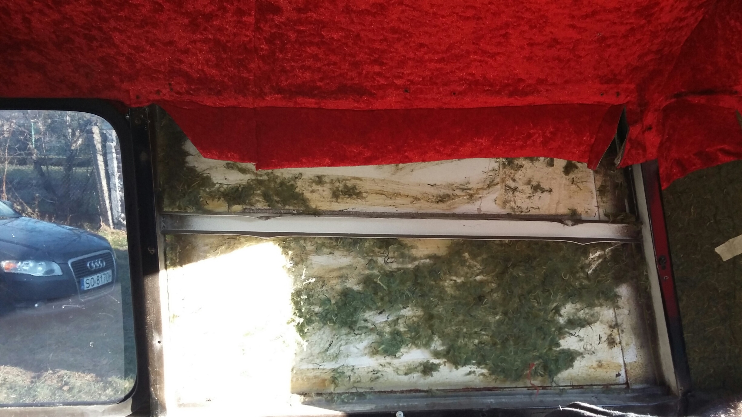 No więc dzis trochę ładnej pogody to zaczołem przygodę z nysą ,oglądając dokładnie przeraziłem się trochę jest naprawde w kiepskim stanie blacharskim ;/ zaczołem demontować tapicerki rózne dziwne futra jakies zgnite wykladziny deski niestety okazały sie pruchnem smruttt niesamowity ktoś wate szklana w kazdy zakamarek dał a na to steropian rdza dokładnie wszedzie .Rózne przerobienia tapicerek chamskie wkrety gwozdzie normalnie masakra. Według mnie jest konieczne sciaganie budy od ramy czeka mnie to jutro śruby wszystkie już mokną.