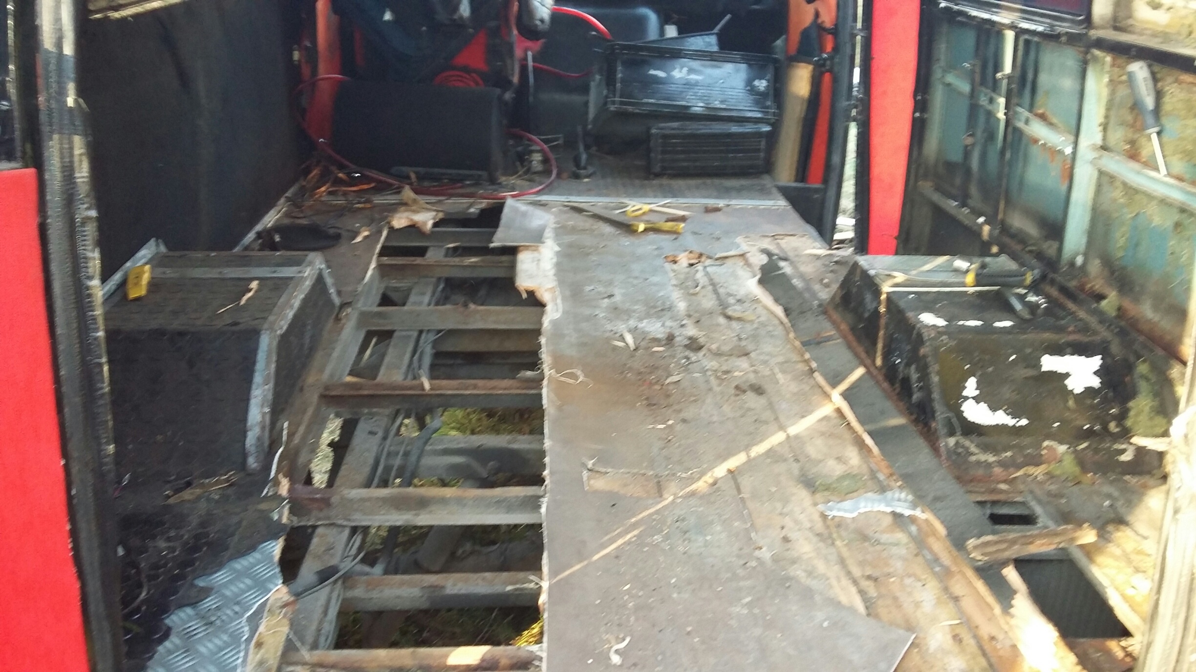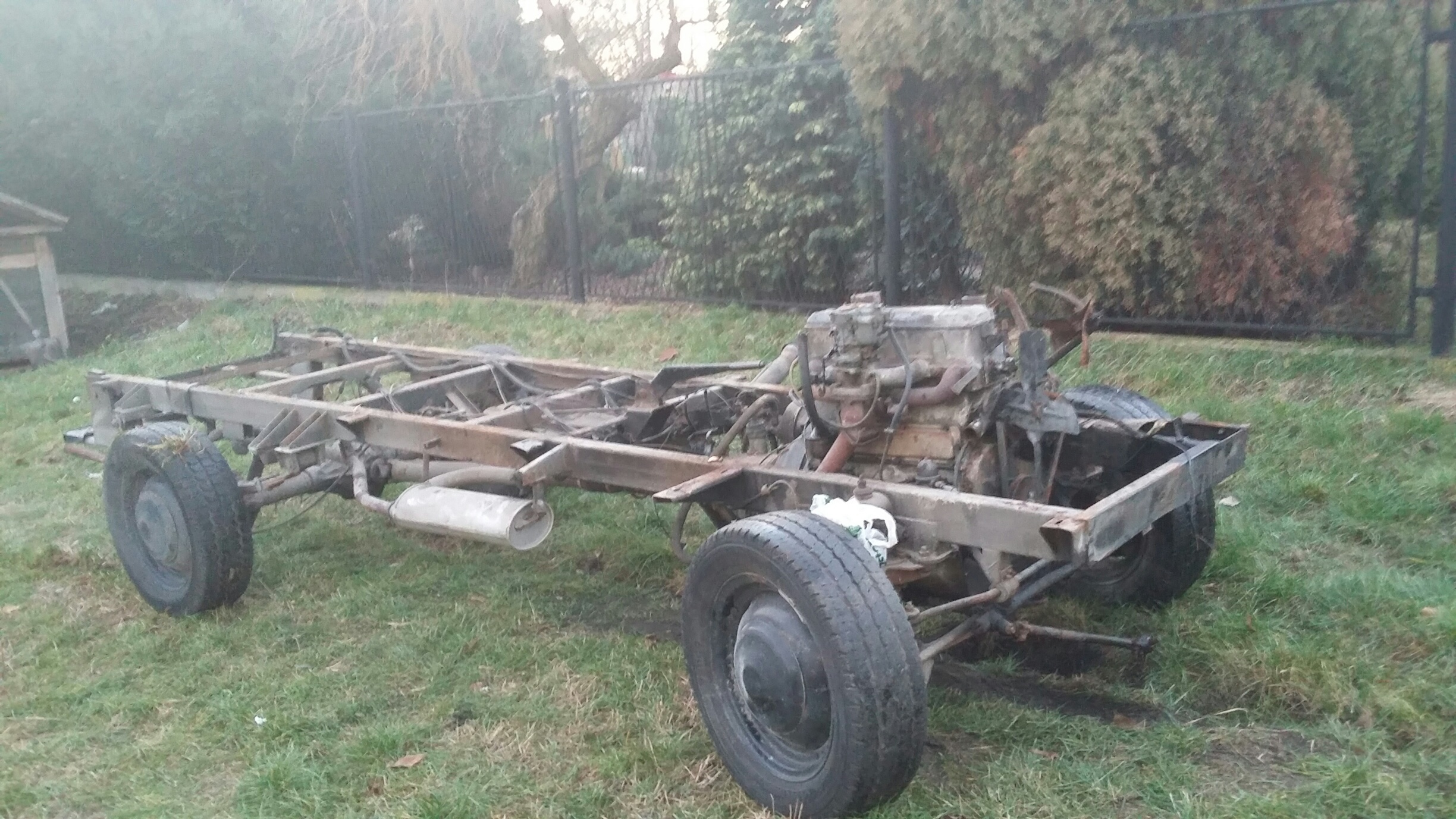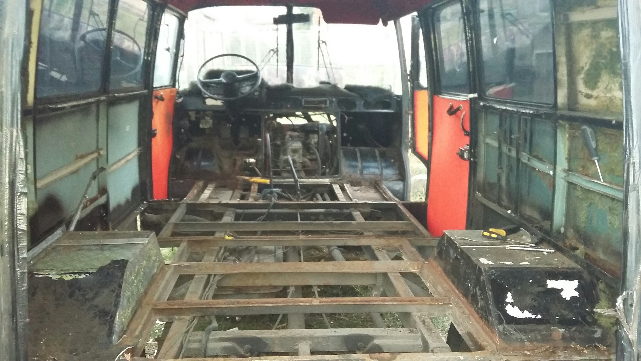 No więc dzis trochę ładnej pogody to zaczołem przygodę z nysą ,oglądając dokładnie przeraziłem się trochę jest naprawde w kiepskim stanie blacharskim ;/ zaczołem demontować tapicerki rózne dziwne futra jakies zgnite wykladziny deski niestety okazały sie pruchnem smruttt niesamowity ktoś wate szklana w kazdy zakamarek dał a na to steropian rdza dokładnie wszedzie .Rózne przerobienia tapicerek chamskie wkrety gwozdzie normalnie masakra. Według mnie jest konieczne sciaganie budy od ramy czeka mnie to jutro śruby wszystkie już mokną.