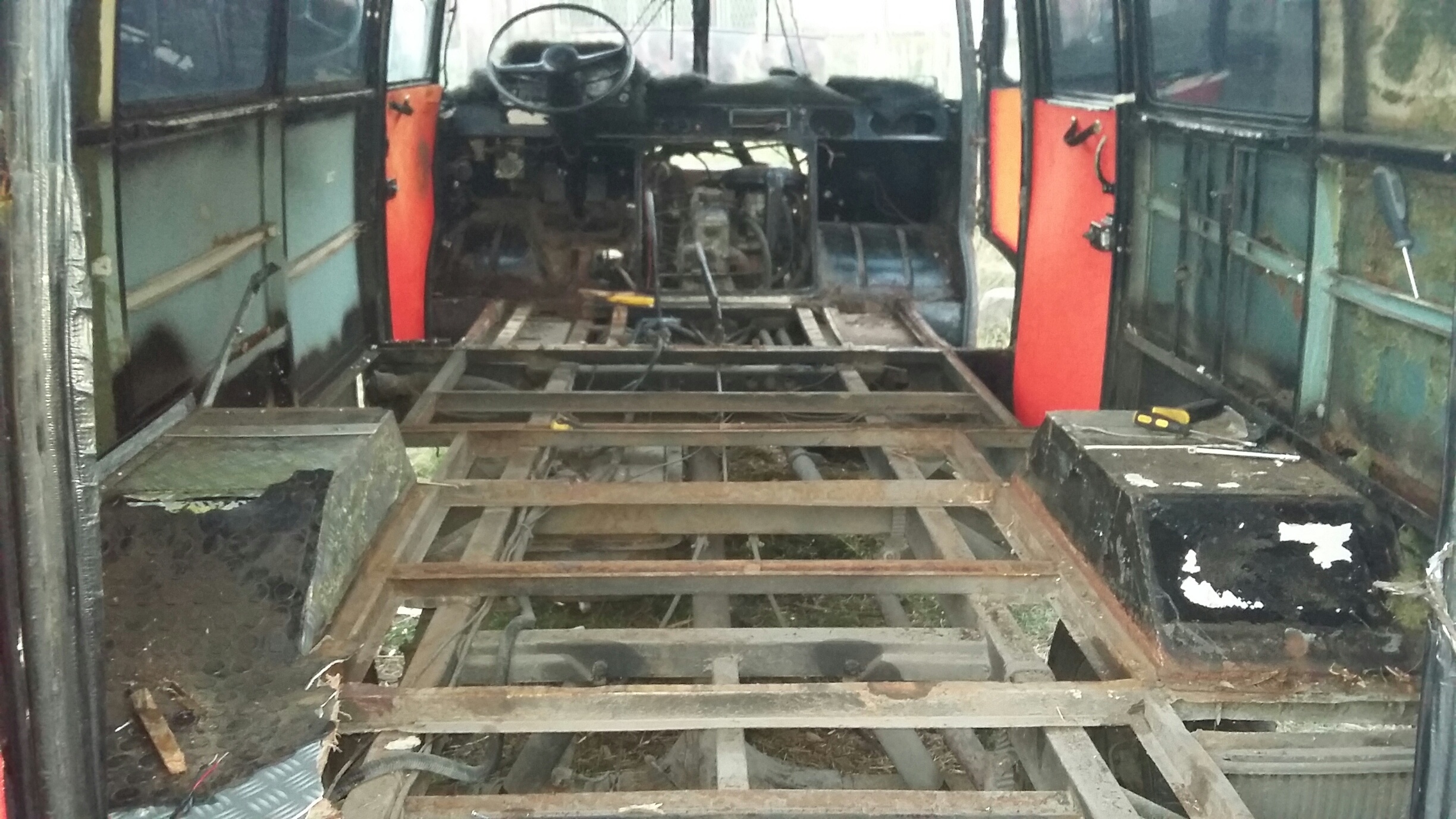 Masz 12 śrub mocujących nadwozie do ramy - przynajmniej fabrycznie. W Twojej widać, że szkielet podłogi juz ktoś robił.