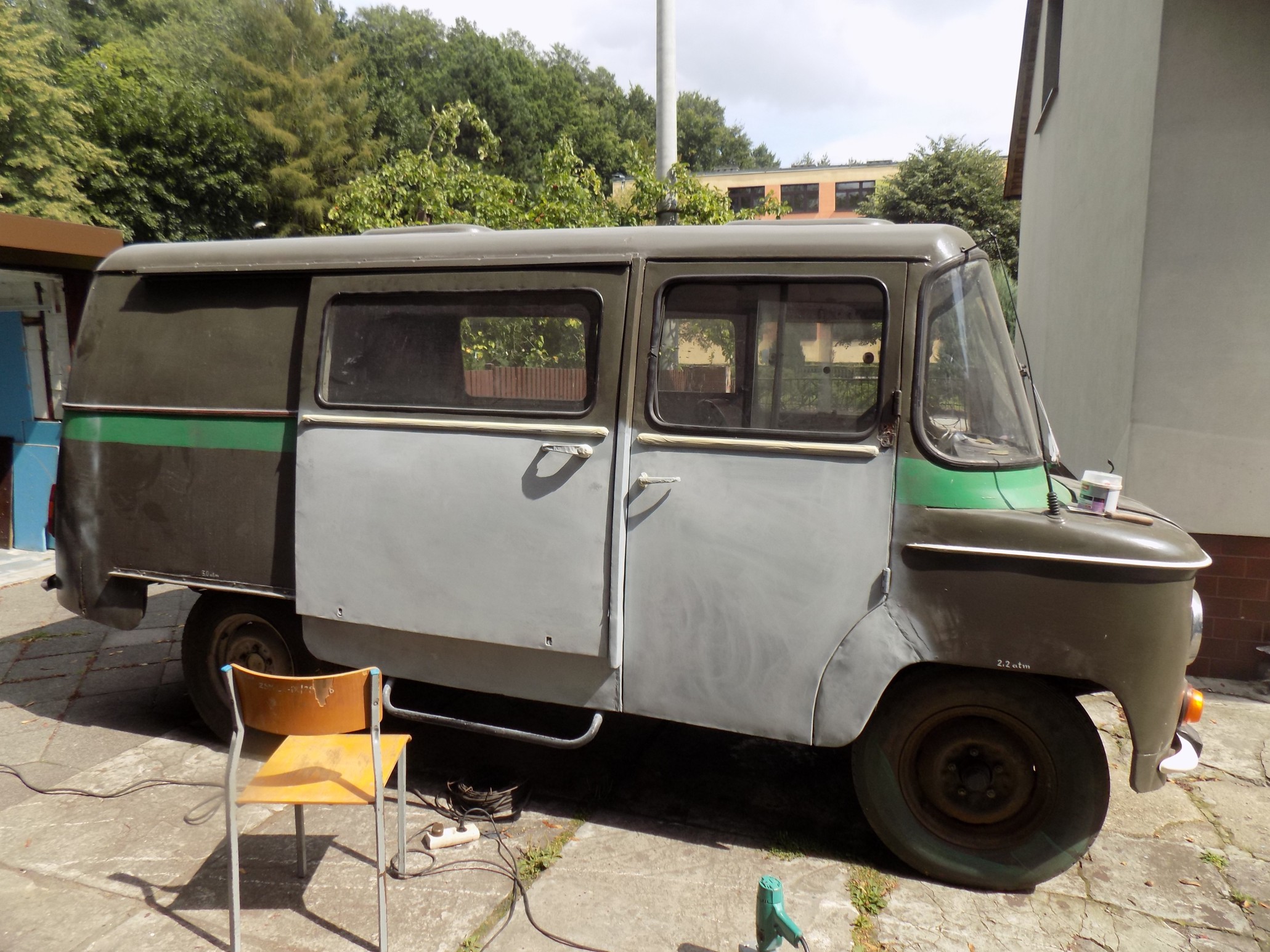 Samochód ma okablowanie, które ma już ponad 50 lat. Do tego jeszcze w środku część tapicerek na ścianach pochodzi nie od Towosa, ale od Mikrobusa i tutaj problem, bo nie ma w nich otworów do mocowania na ścianach ławeczek.