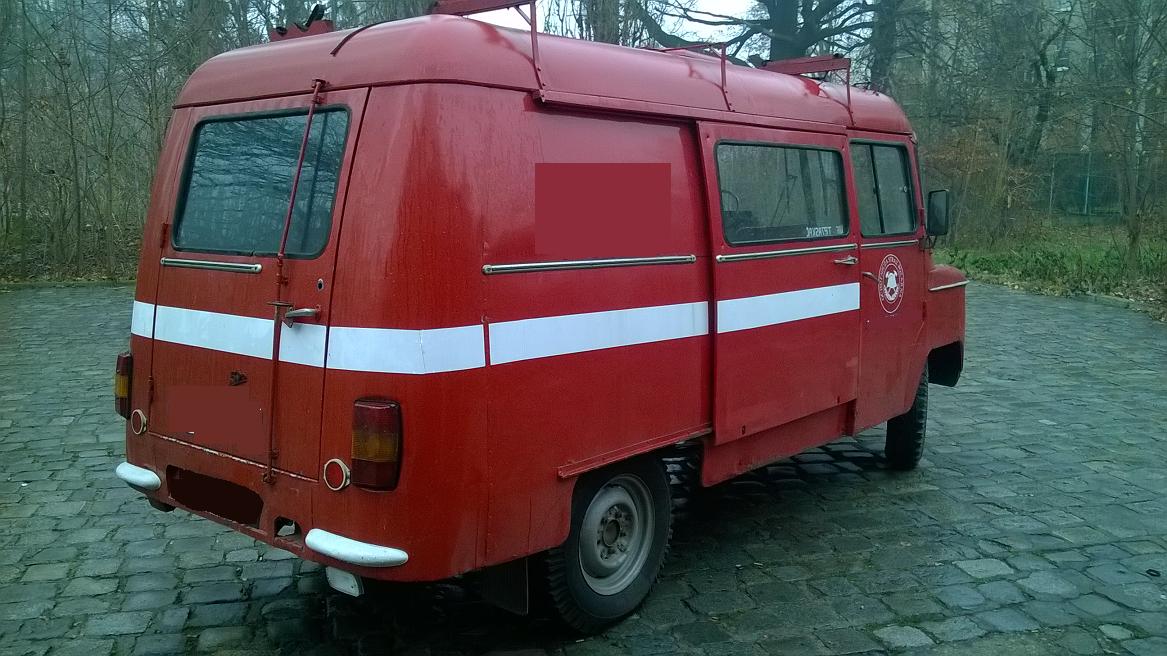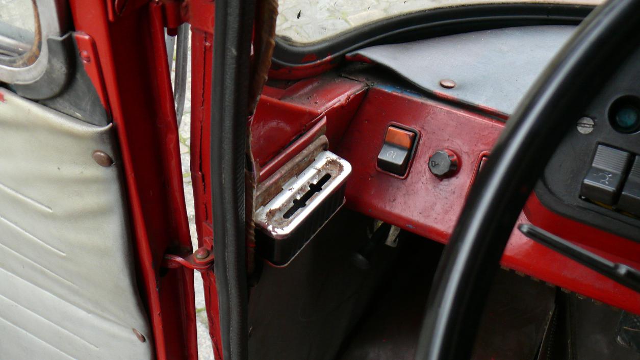 Od razu odpieram zarzut wątpliwej resortowości siłowej. Tak, wiem, nie ma drugiego baku. Ma również wyraźne ślady remontu obu boków. Zakładam, że w dobie dobrobytu stacji paliwowych strażacy albo nawet wcześniej policja wymontowali drugi bak... Przełącznik w szoferce jest. Do czego służył uchwyt na desce mogę się tylko domyślać ale zakładam, że to głośnik radiostacji właśnie. Gdzie była zamontowana to pojęcia nie mam. Tak samo jak nie ma pasów i kolejny przegląd przyprawia mnie o dreszcze ponieważ jestem pierwszym właścicielem po straży, który jest cywilem.