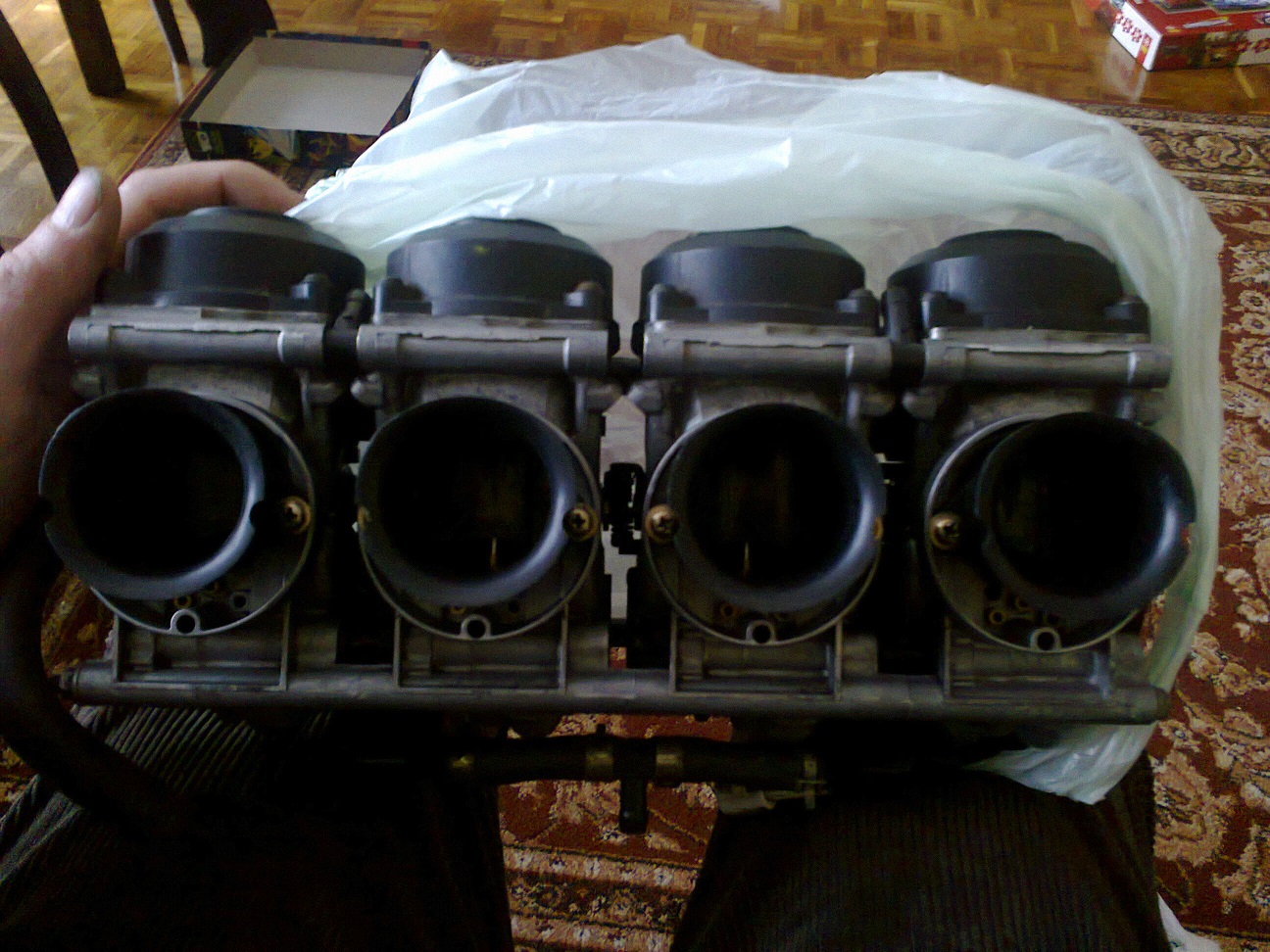 Komentarz: kolektor wylotowy, gaźniki mikuni na króćcach i pucha zbiorcza