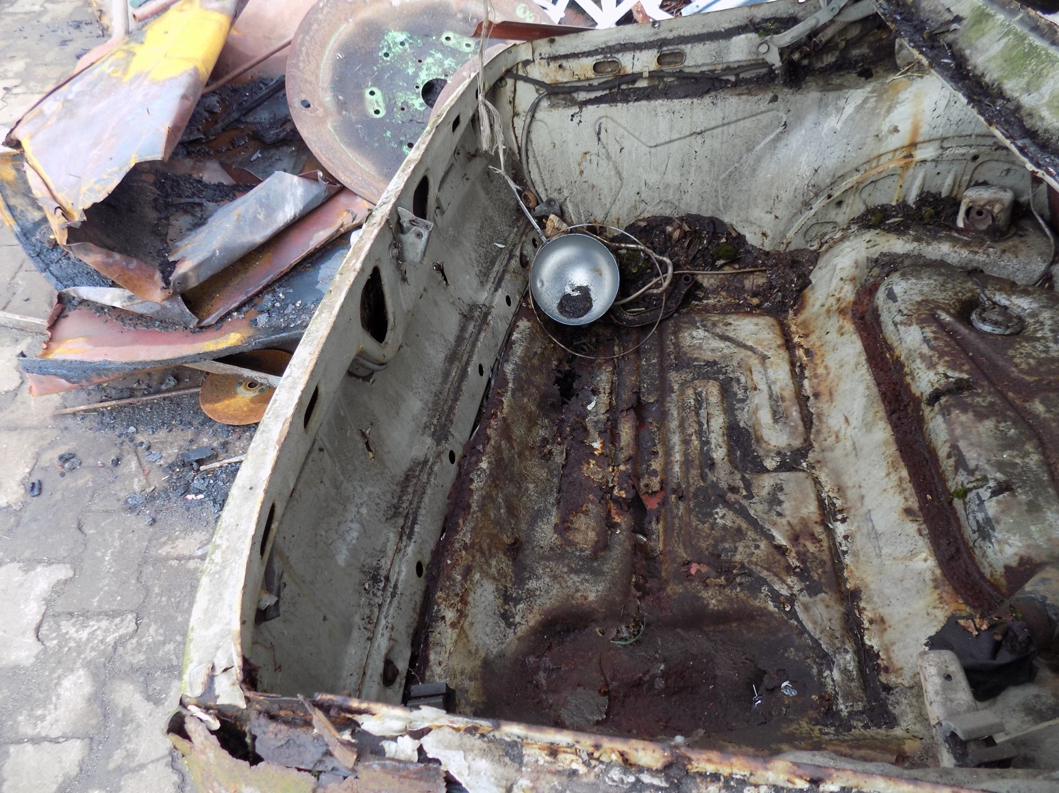 ...znajomy mechanik wytargał z niego jeszcze kawałek ramy z przednim zawieszeniem i skrzynią biegów (te elementy leżą na złomie do dzisiaj, choć pytanie, czy mają jakąkolwiek jeszcze wartość użytkową...