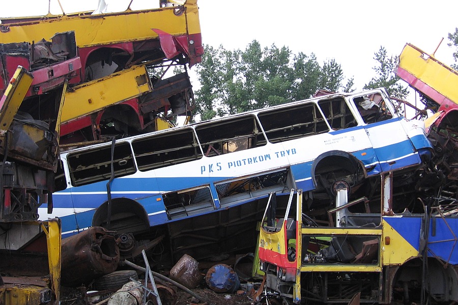 ...choć pewnie wśród tych maszyn ze zdjęć powyżej znalazły się też takie, które były całkiem w dobrym stanie, ale jakiś debil miał za dużo kasy, wolał gminę/miasto zadłużyć na nowy tabor i wolał całkiem zdrowy wóz "uśmiercić"...