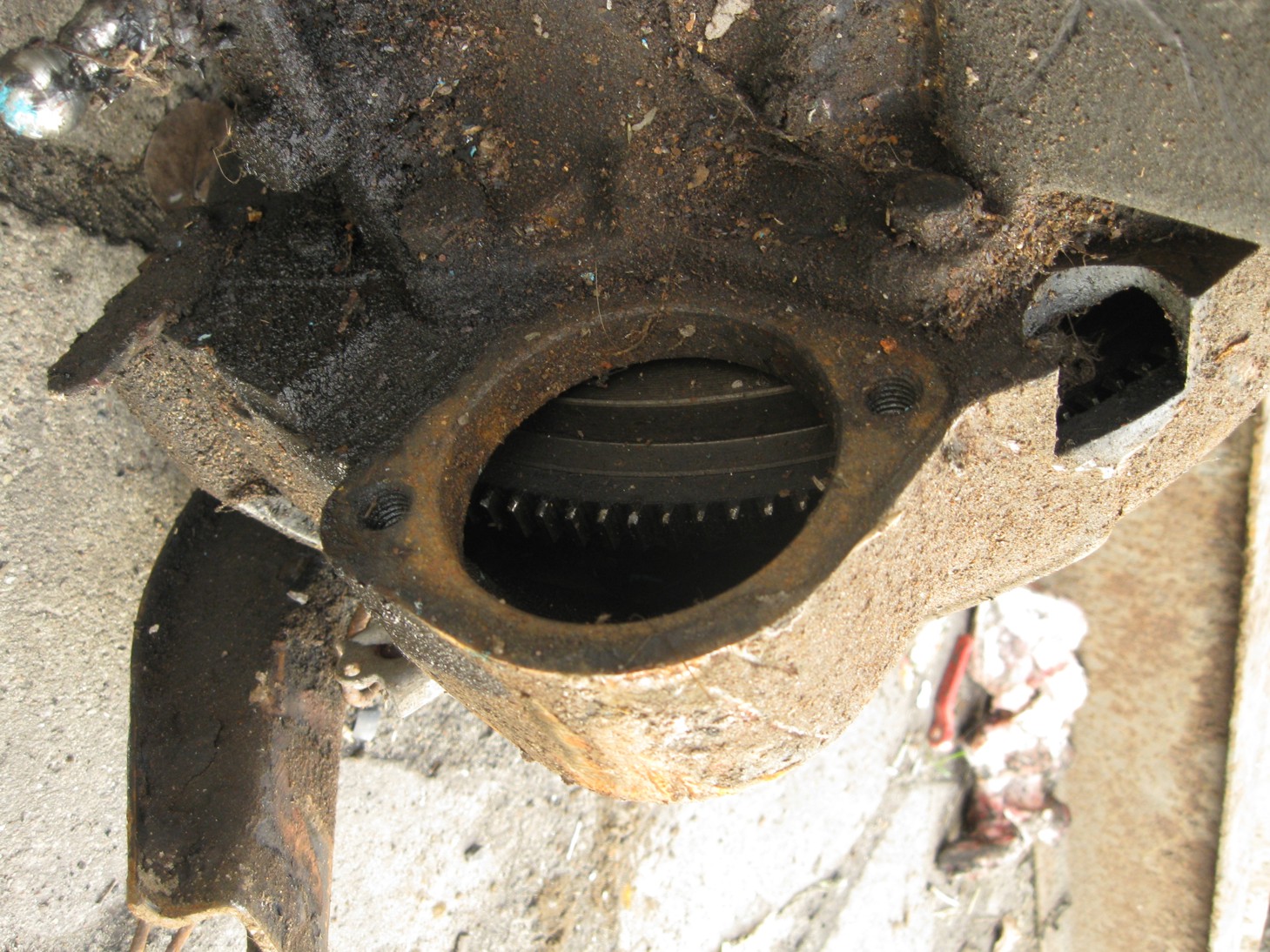 Jak widać brakuje tam korka u góry w otworze gdzie się wlewa olej. Korki takowe mam - to nie problem dla mnie. Problem jednak w tym, czy się tam już woda nie wlała.