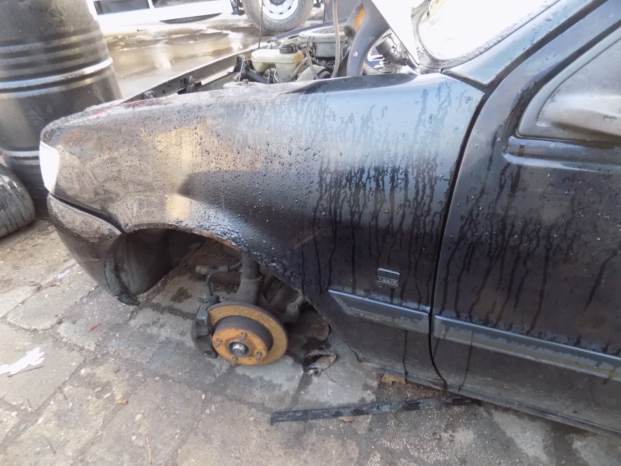 2. Wszystkie elementy wyszlifowałem do idealnie błyszczącego srebrnego metalu, odtłuściłem i pomalowałem granatową farbą typu "DEKORAL - prosto na rdzę". (praktycznie w kolorze mojego nadwozia!!!)