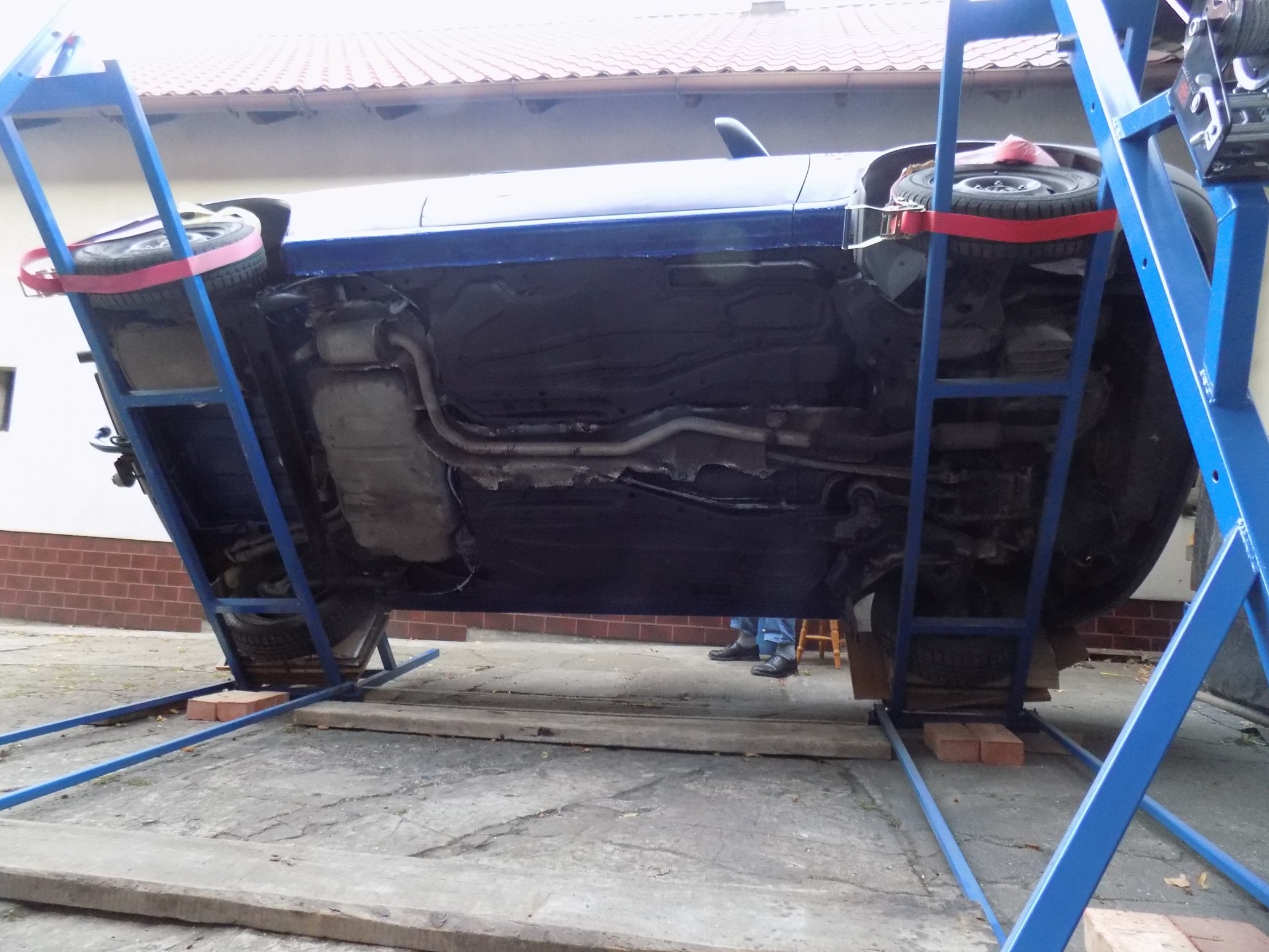 Komentarz: W porównaniu z zabawą pod autem, na kanale itp - komfort pracy i poświęcony czas ma się jak dzień do nocy. Tutaj przeszlifowałem płytę podłogową "tarczową gumówką" w 2 godziny - bez sypania się syfu na głowę, bez kombinowania "jak się zmieścić z narzędziem" i bez lania się farby na głowę! W życiu już nie będę włazić z pędzlem i szlifierką pod podwozie!!!