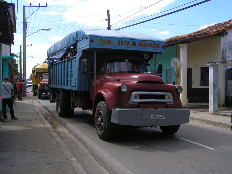 Otóż transport dostawczy praktycznie nie istnieje - bo nie ma towarów do wożenia . Trzcinę cukrową wozi się ciężarówkami , a dostawa do sklepów odbywa się pieszo lub na bagażniku rowerowym . Jeździ trochę współczesnych samochodów dostawczych produkcji chińskiej i czasem jakiś Peugeot Boxter . Kubańczycy wyspecjalizowali sie za to w budowie pojazdów do przewozu ludzi - bo autokary należą się tylko cudzoziemcom .