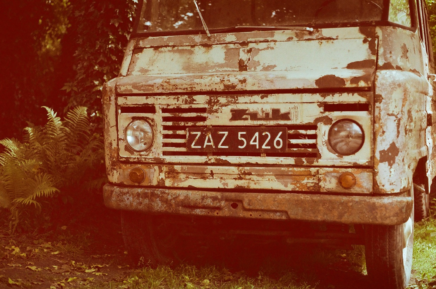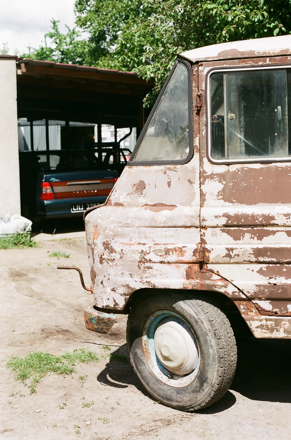 Żuk-strup-ulep, przepiękny, jeżdżacy, w 100% działający uwieczniony przeze mnie na kliszy przeterminowanej, stąd te czerwono-brązowe kolory. Uprzedzając pytania - Żuk raczej pozostanie w takim stanie jak jest, jedynie zostanie wzmocniony od wewnątrz, coby się buda nie rozpadła do cna :) Mechanika jest w trakcie odświeżania (węże, przewody, oleje, smary itd). Ale ogółem on był po naprawie głównej zostaiwony w krzakach. Silnik pali na dotyk, hamulce działają, zero luzów na kierze :) Namawiam Łukasza, żeby mu zrobił żółte, jeden przegląd i zostawił jak jest :mrgreen: