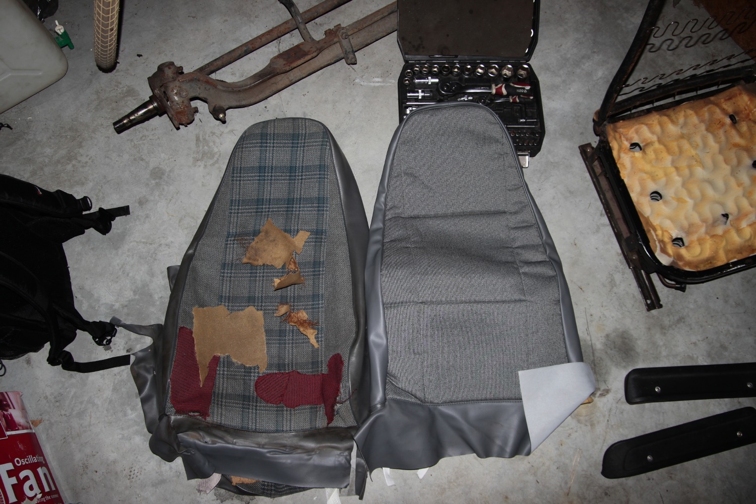 Komentarz: Porównanie nowego pokrowca na fotelu kierowcy ze starym pokrowcem na fotelu pasażera