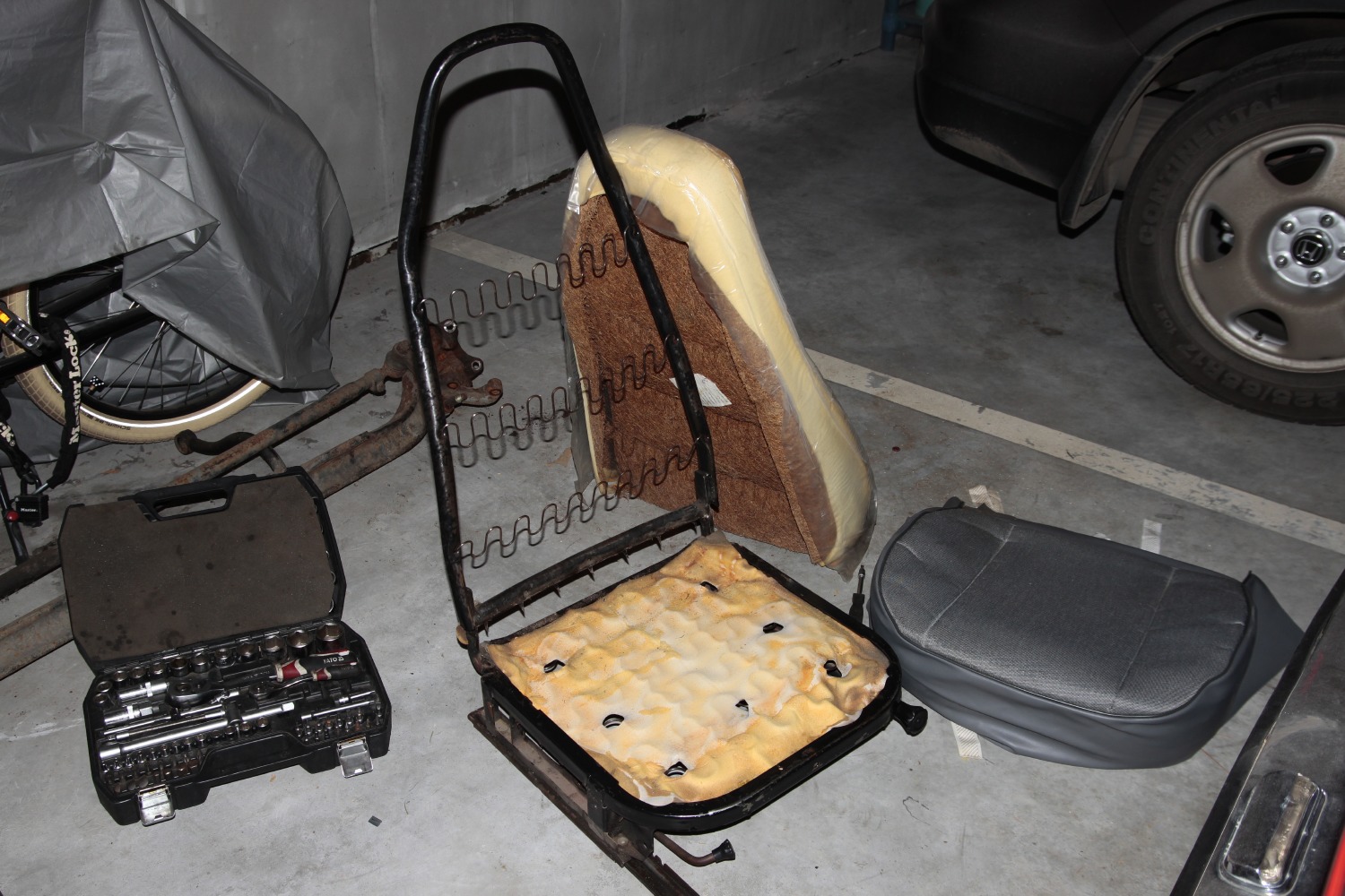 Komentarz: Częściowo rozmontowany fotel kierowcy